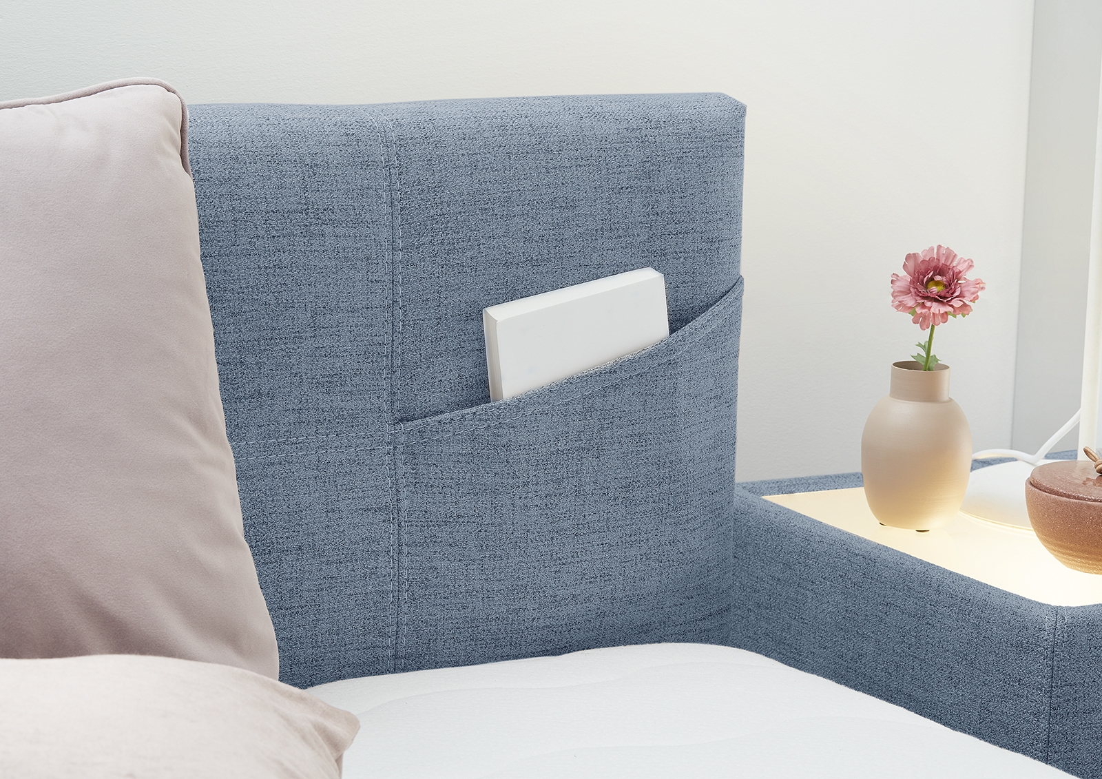 zusätzlichen Stauraum bieten die im Kopfteil vorhandenen 2 Taschen