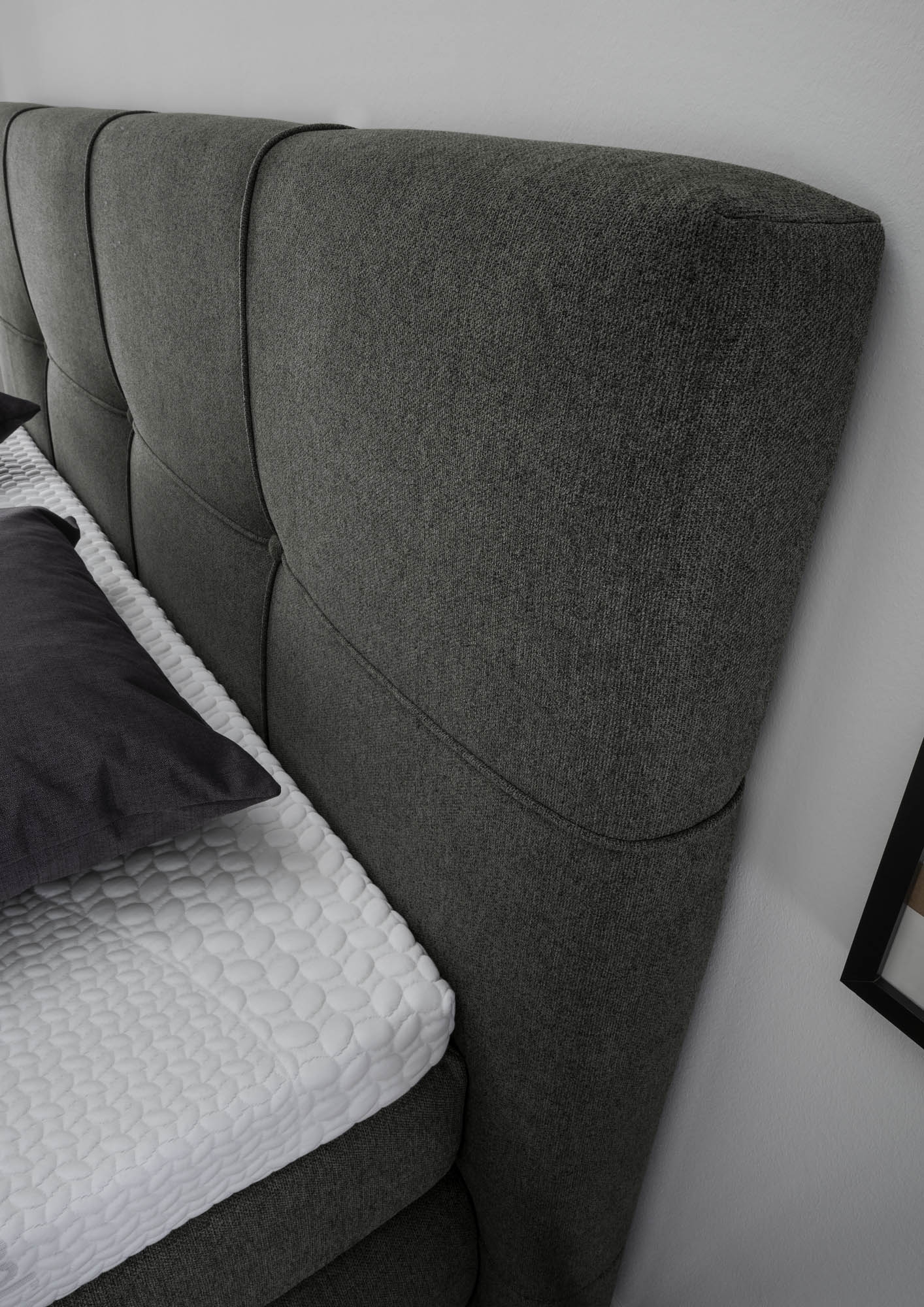 1 aufwendig gepolstertes Kopfteil mit Kederteilung in Karo-Optik