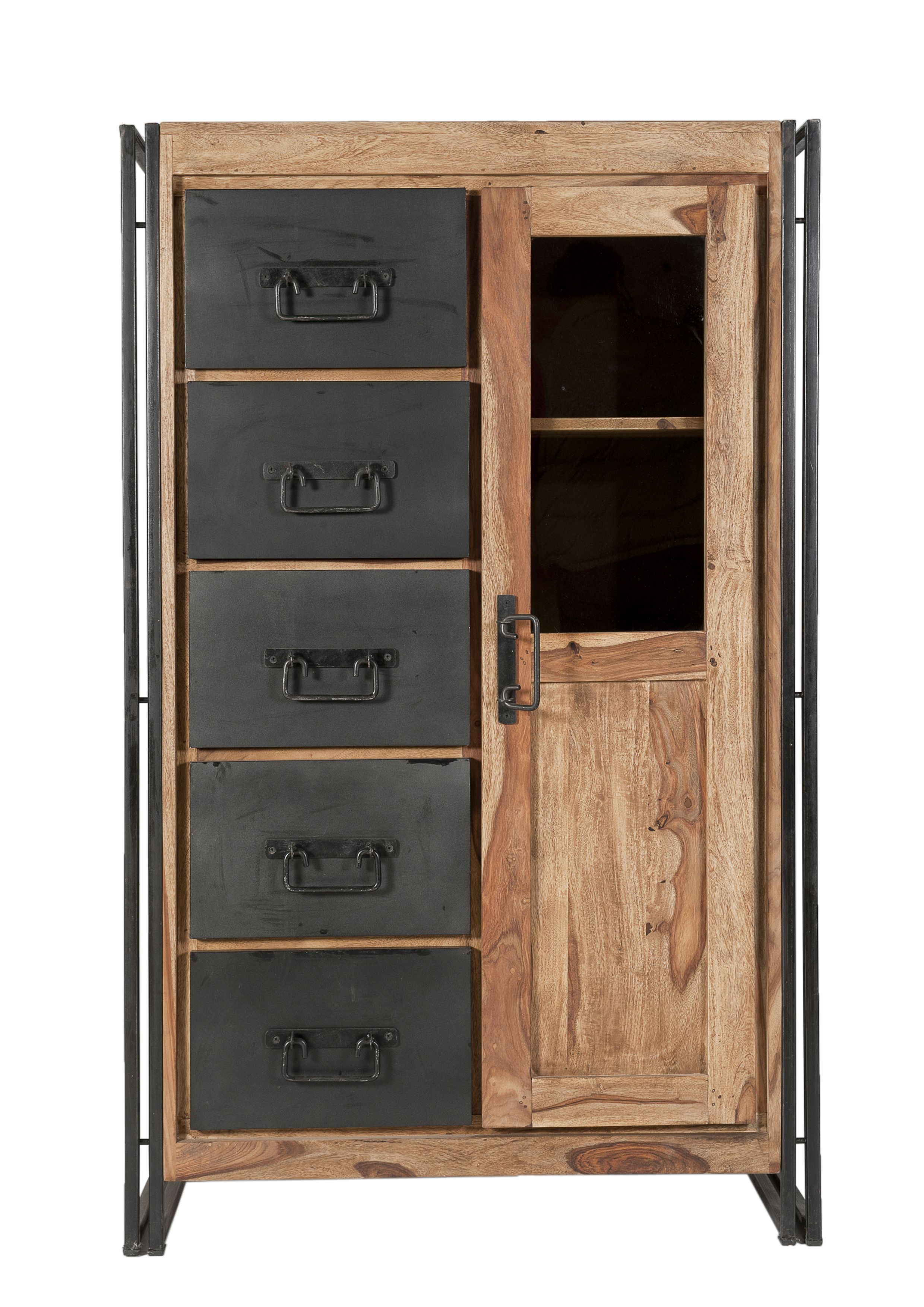 Metall und Holz sind aufwendig auf "used look" getrimmt. Handwerkliche Verarbeitung gibt diesem Möbelstück den individuellen Charakter.
