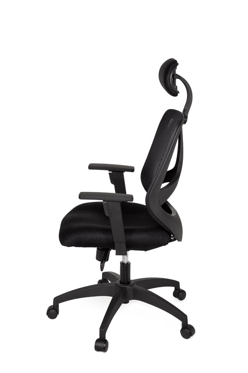 Dieser Bürostuhl besitzt eine ergonomische und überragend ausgeformte Sitzpolsterung. Die Kopfstütze ist durch einfaches schieben höhenverstellbar.