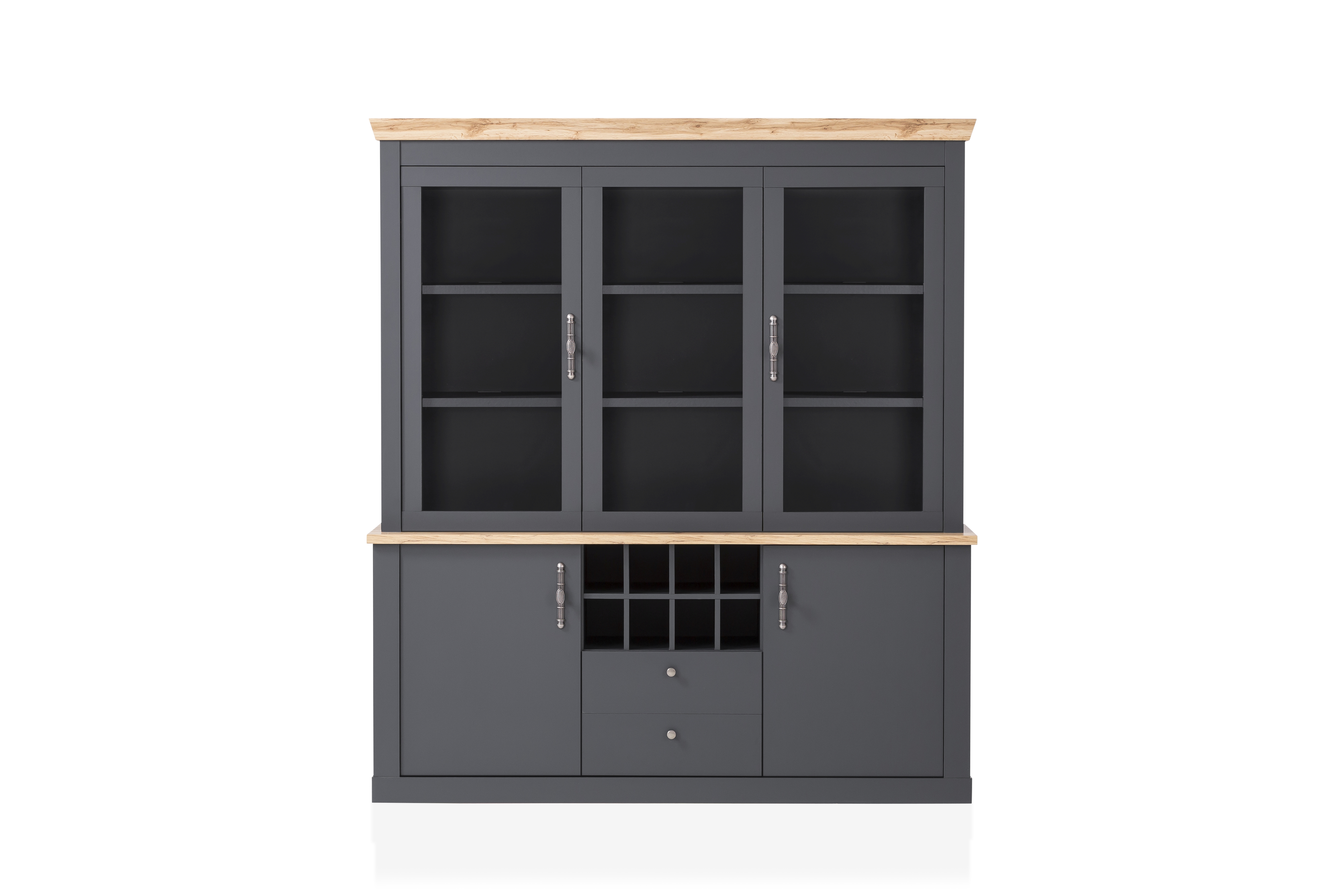 Aufsatz mit 3 Glasrahmentüren, dahinter je 2 Böden
