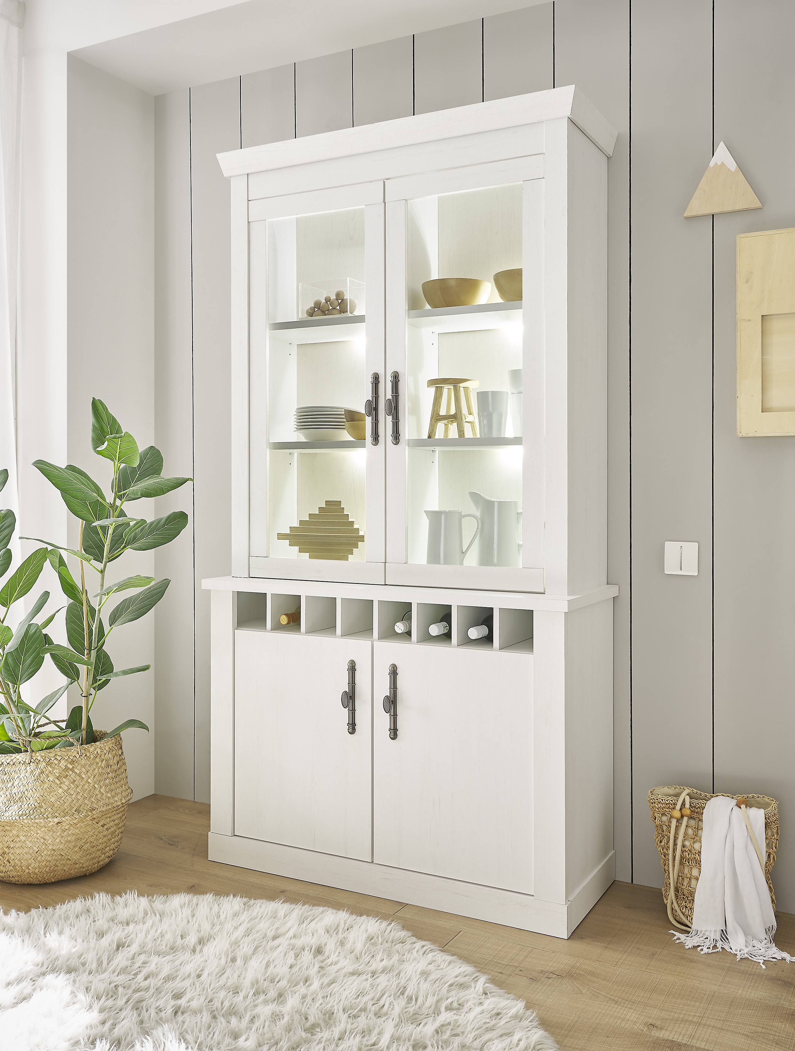 Aufsatz mit 2 Glasrahmentüren, dahinter je 2 Glasböden