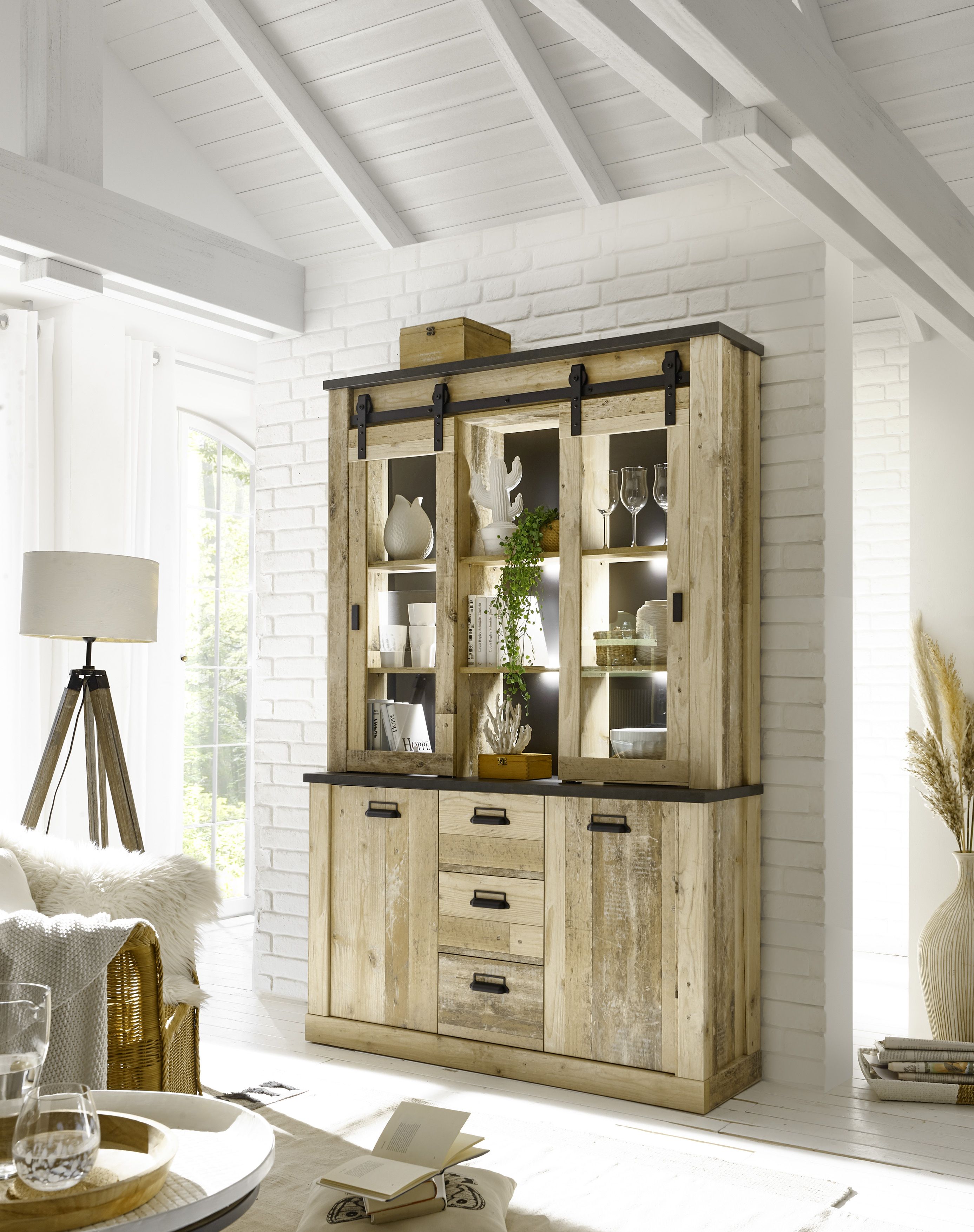 | Ausstattung Kommoden Phono Büro Regal: | Offene Fächer, Schiebetüre(n), Schublade(n), Türe(n) | ||