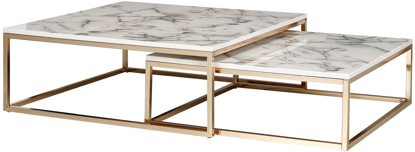 AUFREGENDE ZEITEN ✔ Mit seinem besonderen Zauber gelingt es diesem 2er Set auf magische Weise Ihrem Wohnzimmer ein Stück Glamour einzuhauchen. Die eleganten Gestelle und die Tischplatten in Marmoroptik werden Sie begeistern. Satztische mit unverwechselbarem Design.