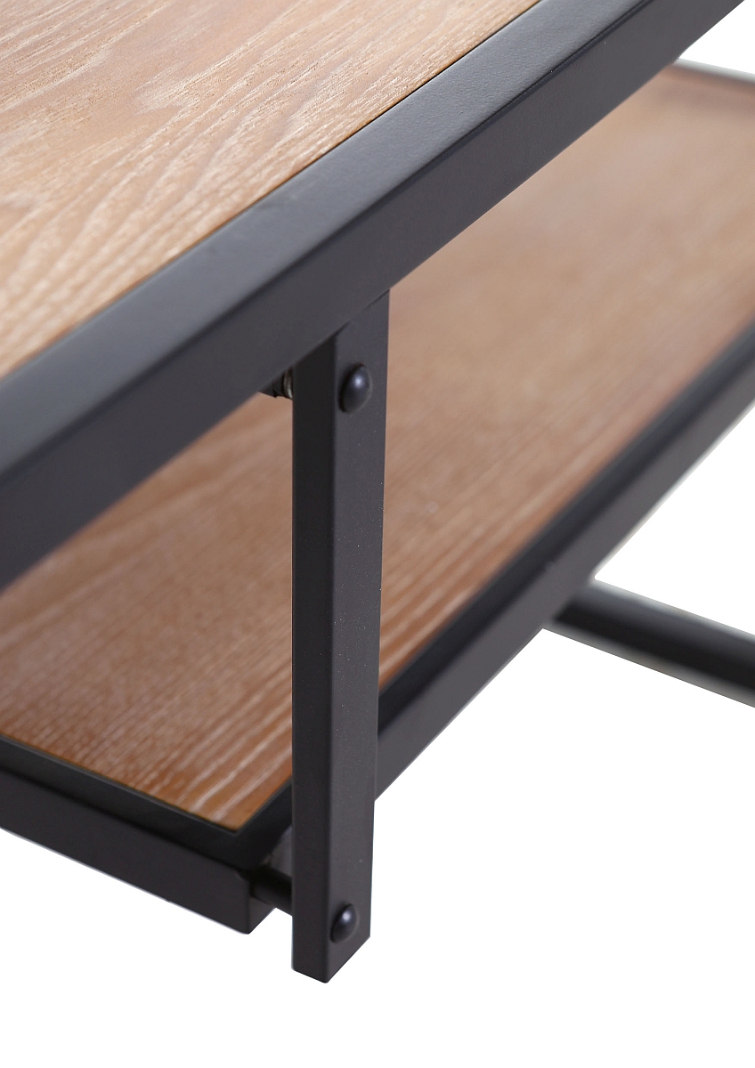 Tischplatte und Ablage: MDF (Mitteldichte Holzfaserplatte) kombiniert mit Echtholzfurnier (China)