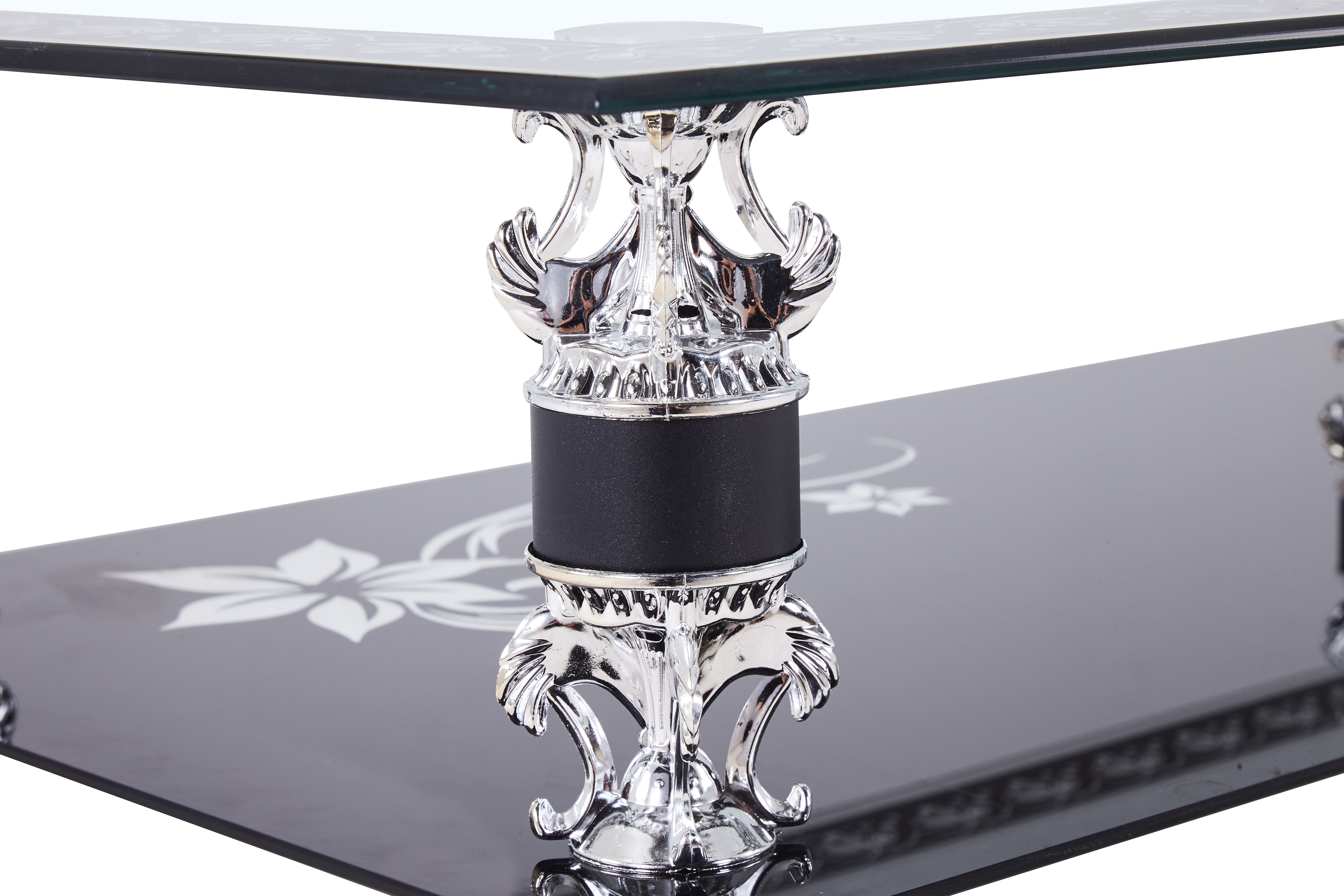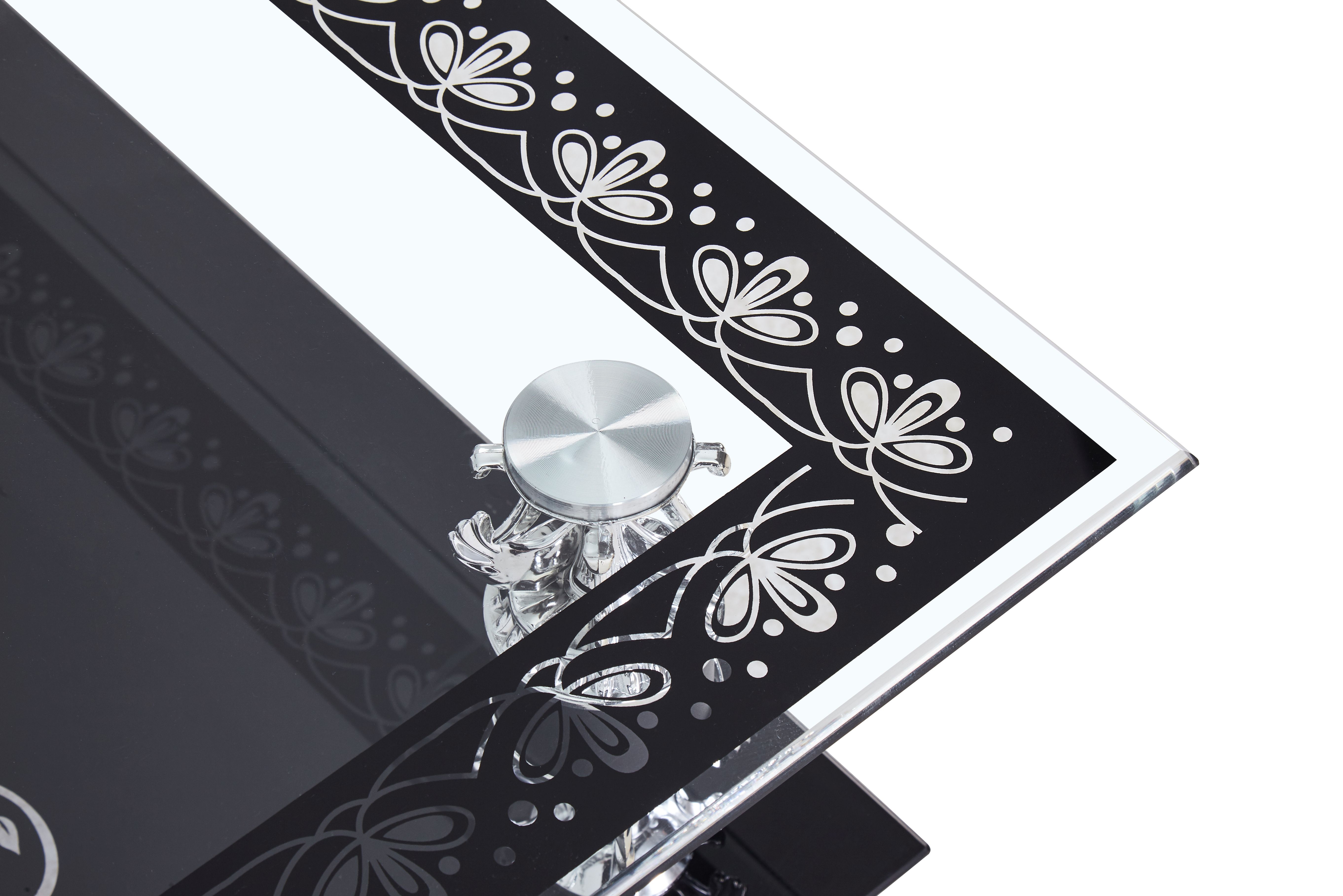 Gestell: Schwarz matt mit Chrom-Verzierungen