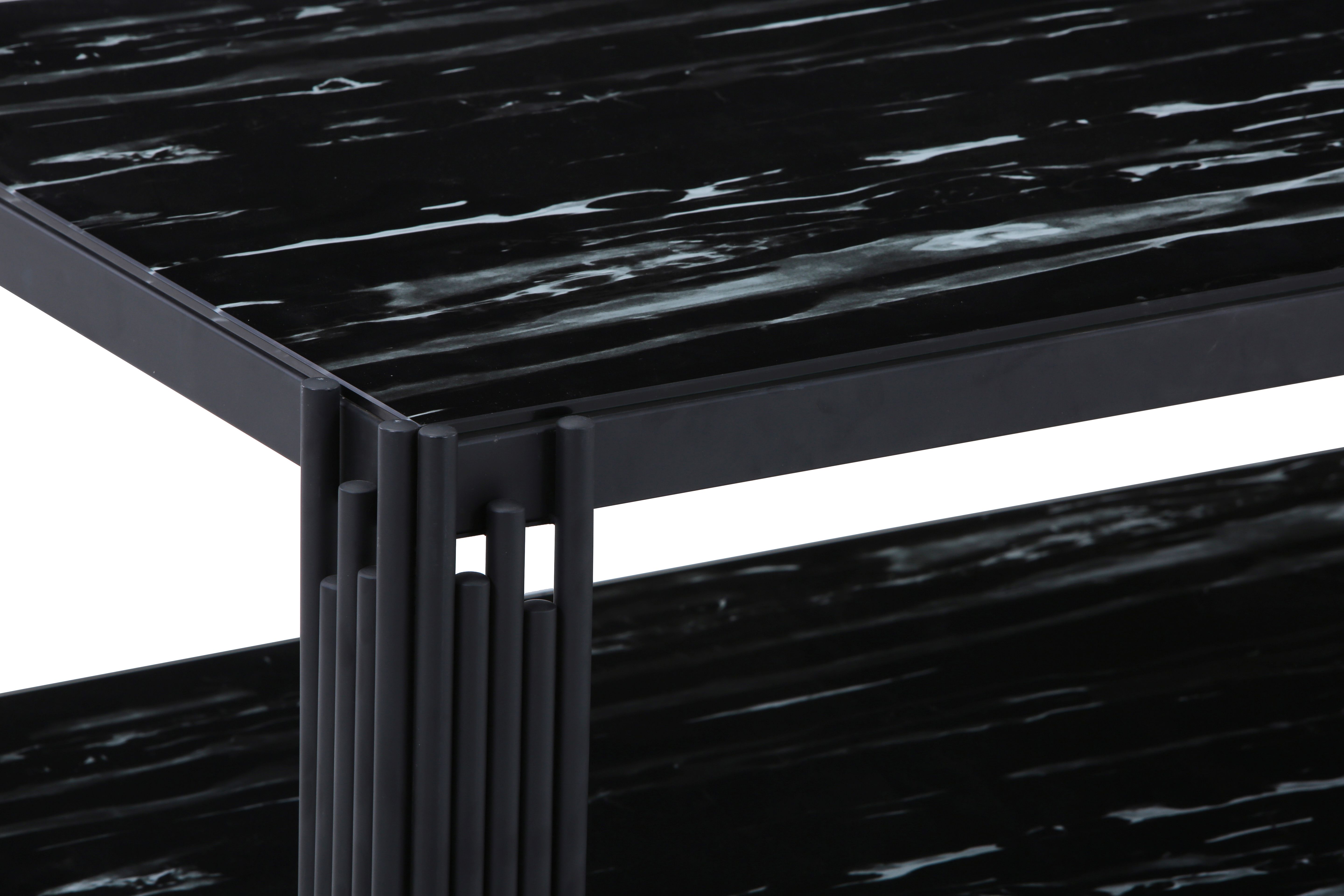 Tischplatte und Ablage: Schwarz in Marmoroptik, Melaminbeschichtung