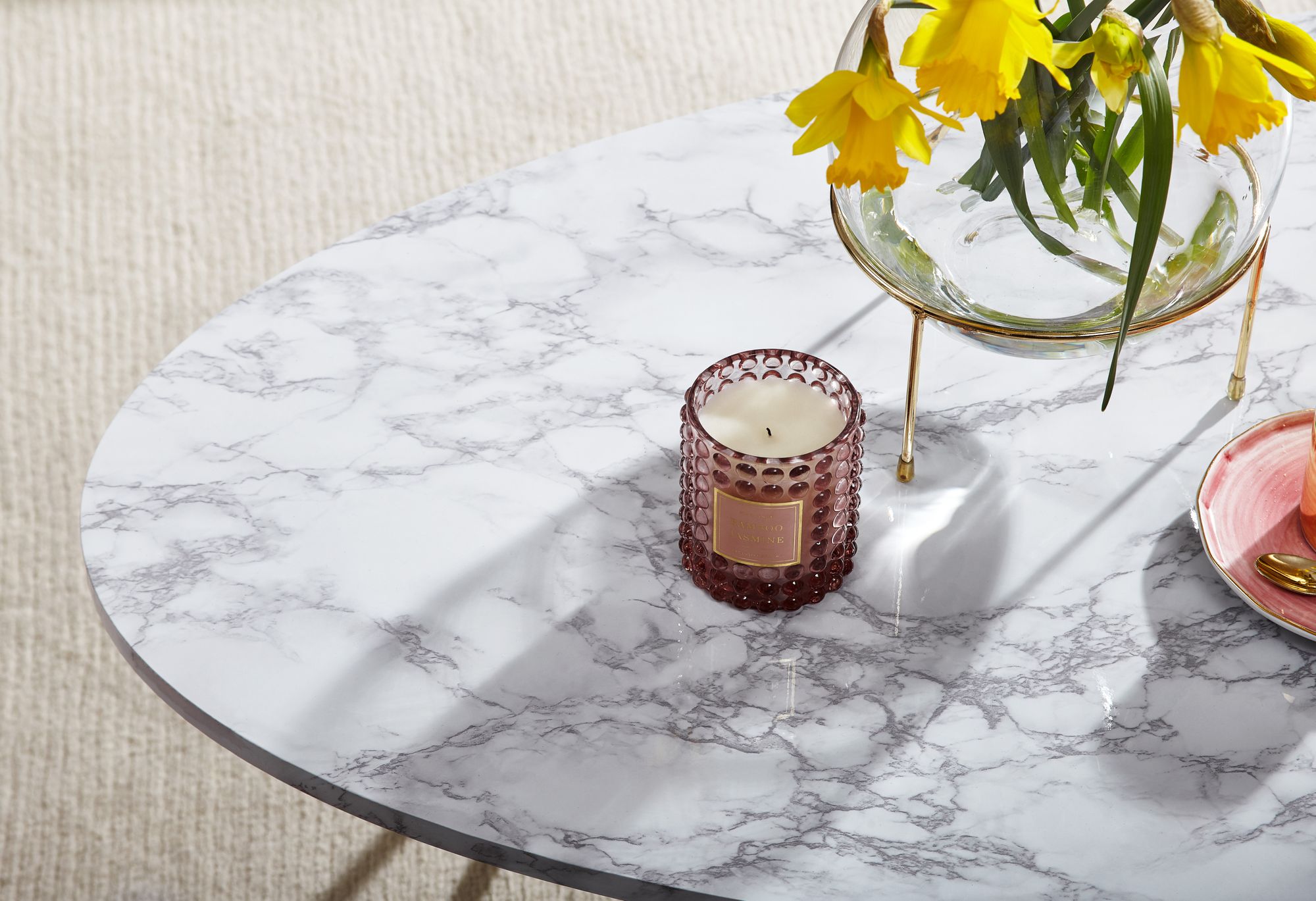 - Ovaler Sofatisch mit anmutiger Marmor-Optik