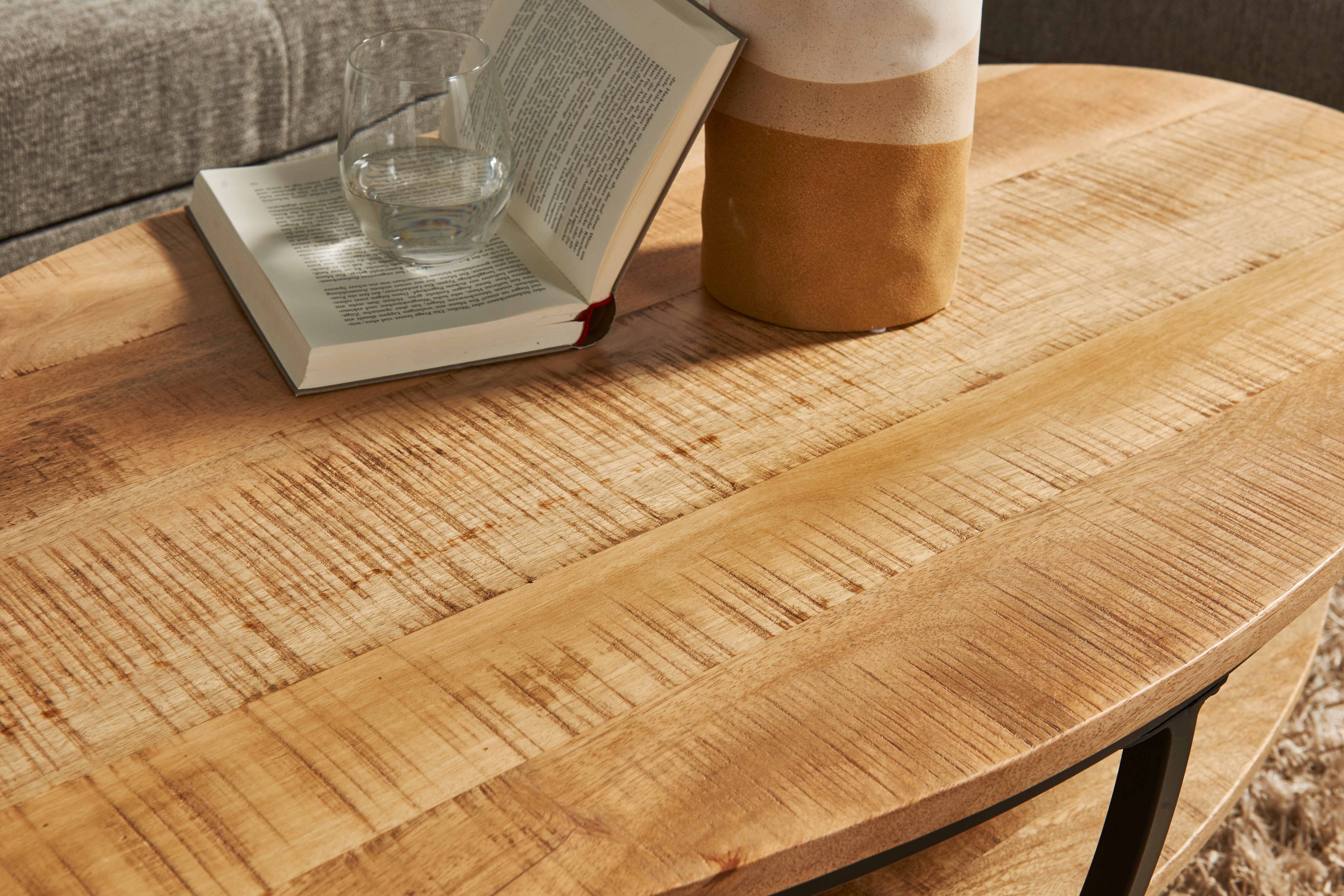 Tischplatte und untere Ablage: Mangoholz naturbelassen (Indien)
