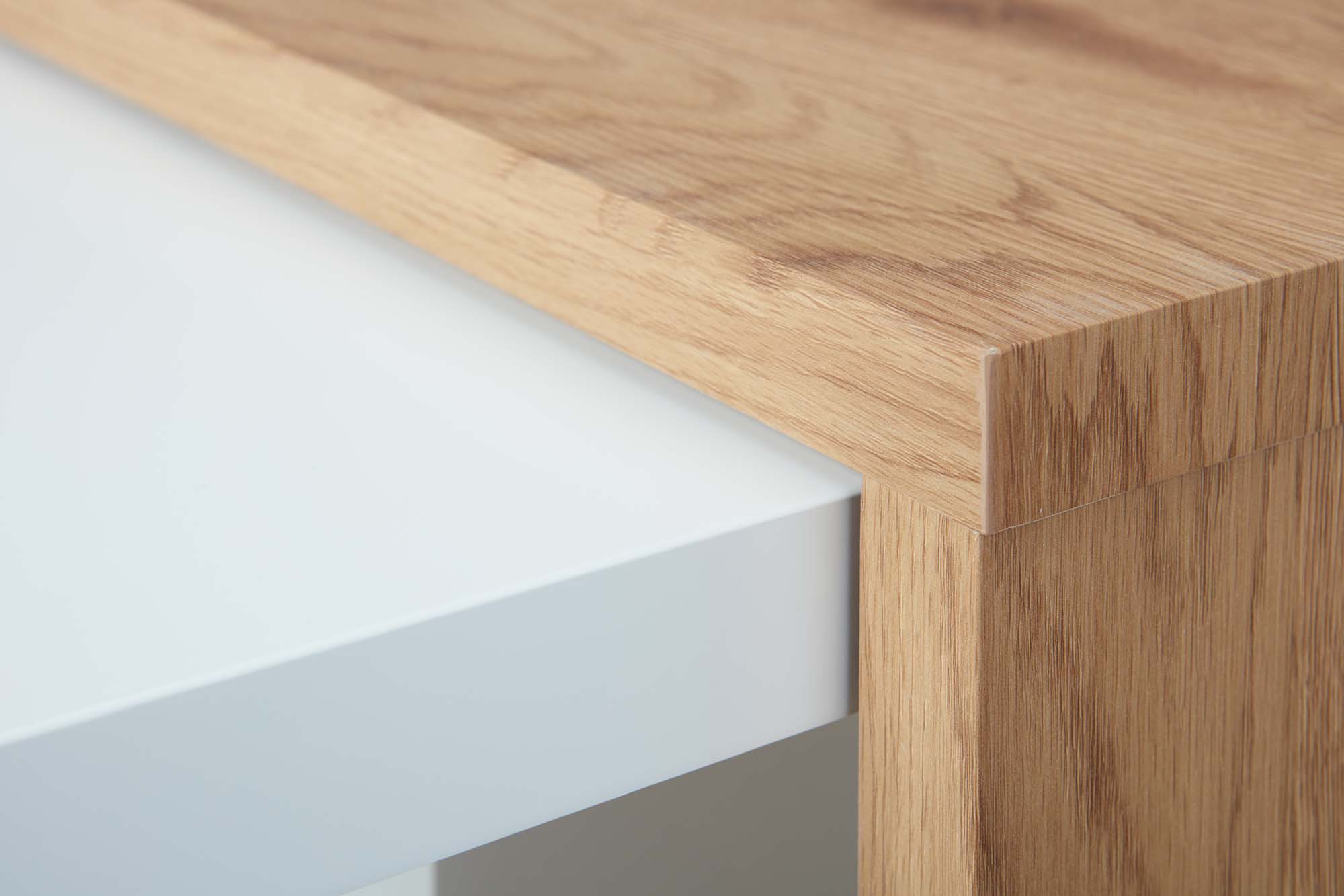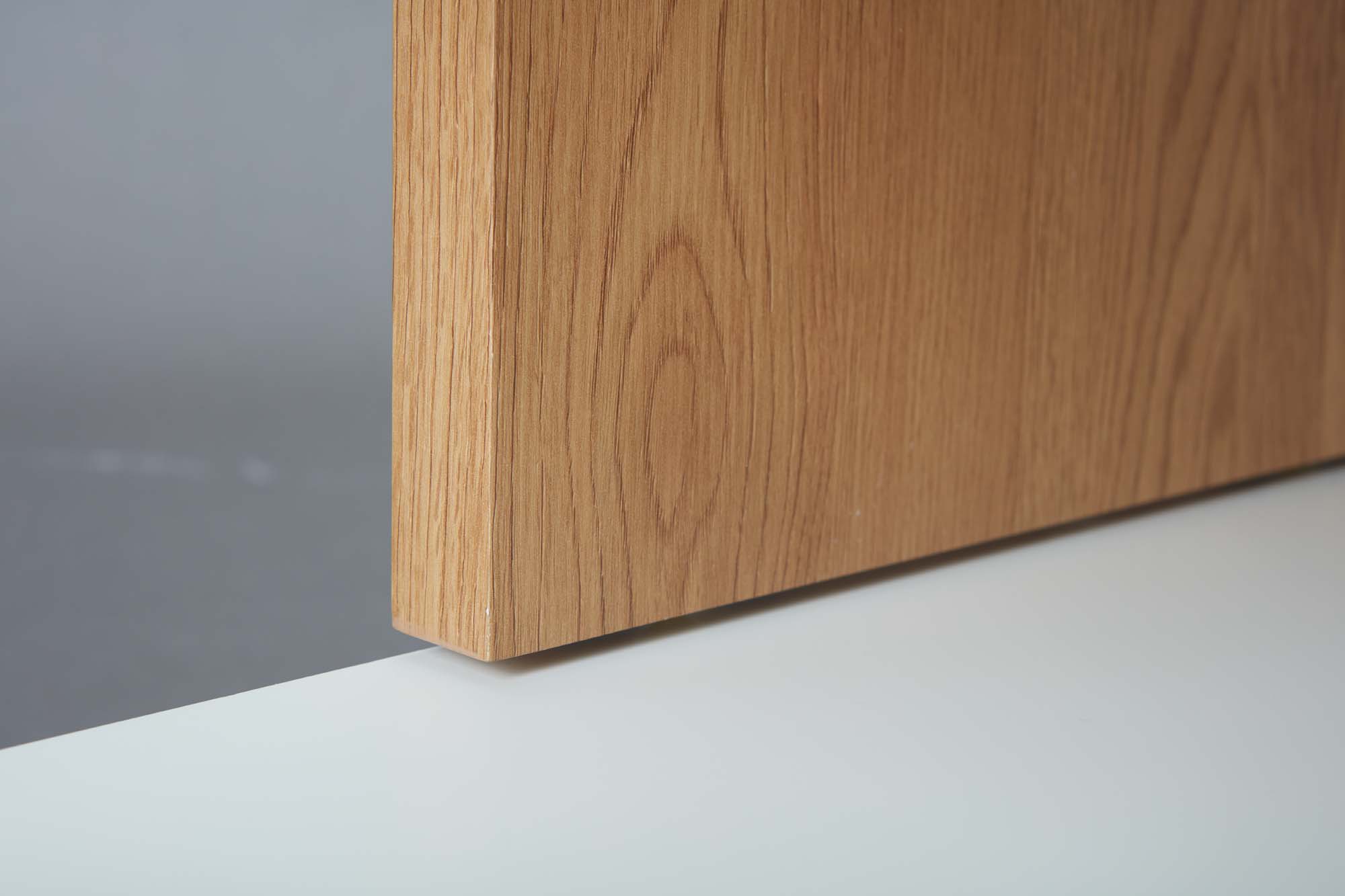 MDF (Mitteldichte Holzfaserplatte) Weiß matt kombiniert mit Wildeiche Holznachbildung