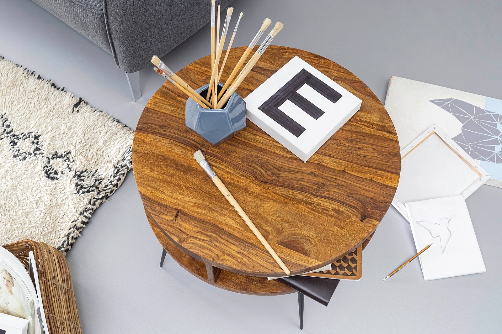 - MATERIAL ✔ Tischplatte: Sheesham-Massivholz - mit Klarlack beschichtet // Die Standbeine bestehen aus pulverbeschichtetem und robustem Edelstahl.