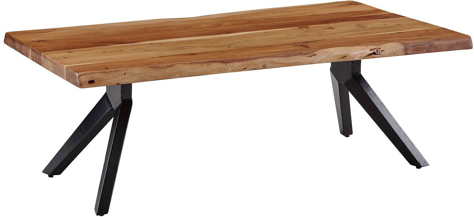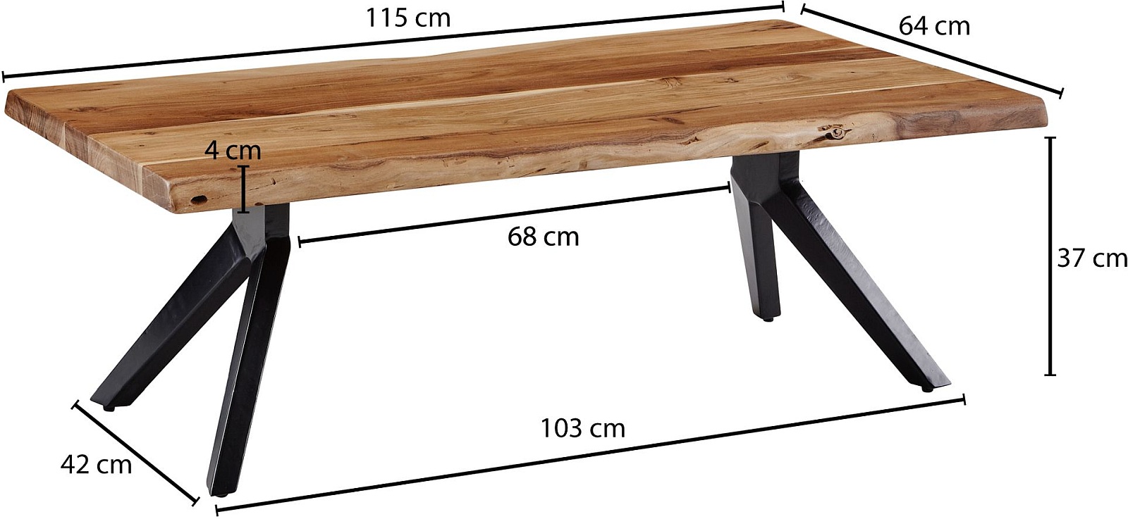 RUSTIKAL UND MIT VIEL LIEBE ZUR NATUR ✔ Dieser massive Wohnzimmertisch überzeugt mit seinem besonderen Design und kombiniert einen rustikalen Look mit modernen Zügen. Für Stabilität sorgt das pulverbeschichtete Metallgestell. Besonderes Augenmerk liegt hier auf der Tischplatte mit wunderschönen Baumkanten und auf der einzigartigen Maserung eines wahren Unikats.