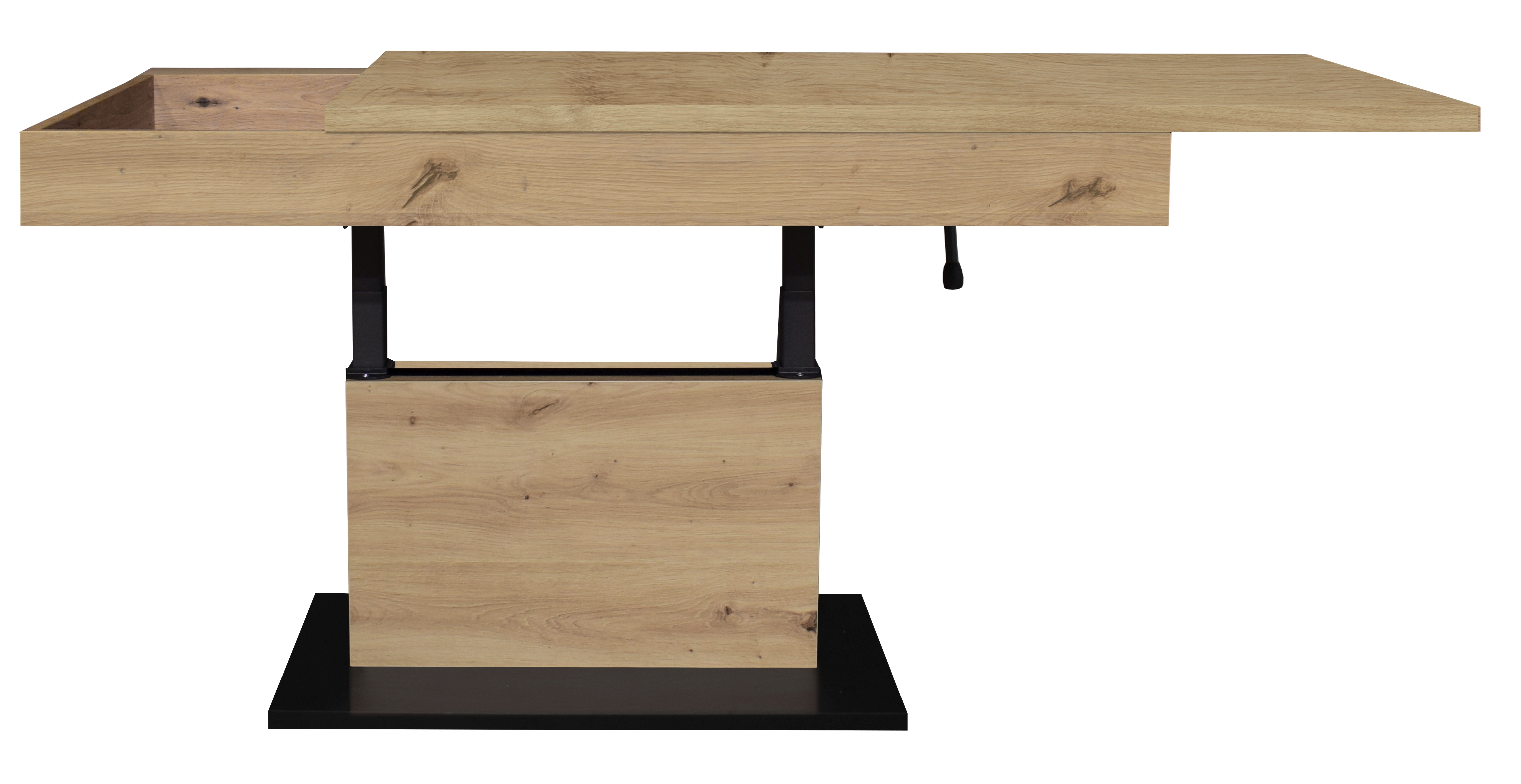 1 verschiebbare Tischplatte, darunter praktischer Stauraum