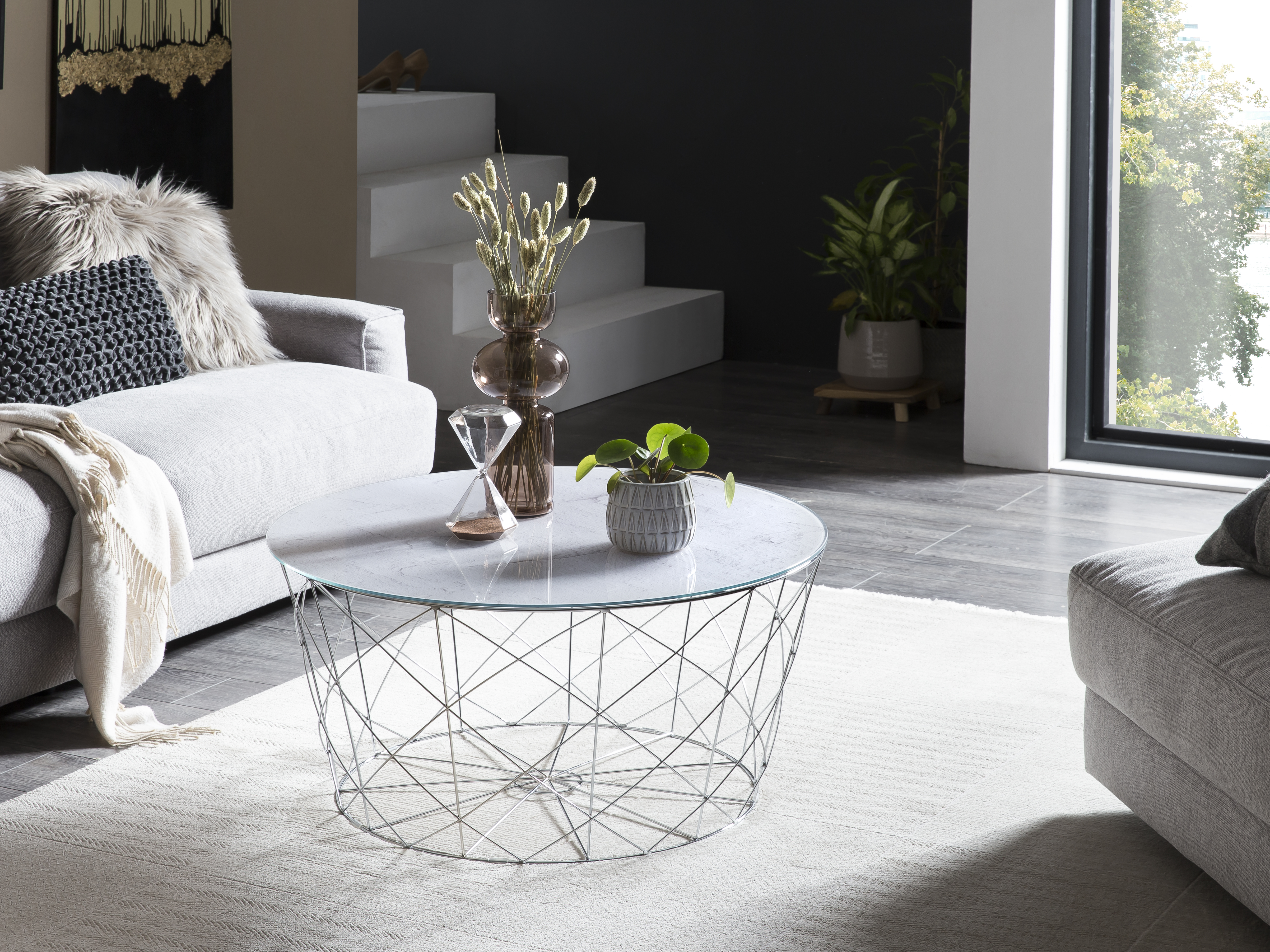 - 6 mm starke Glasplatte mit unterliegender Folie in Marmoroptik Weiß