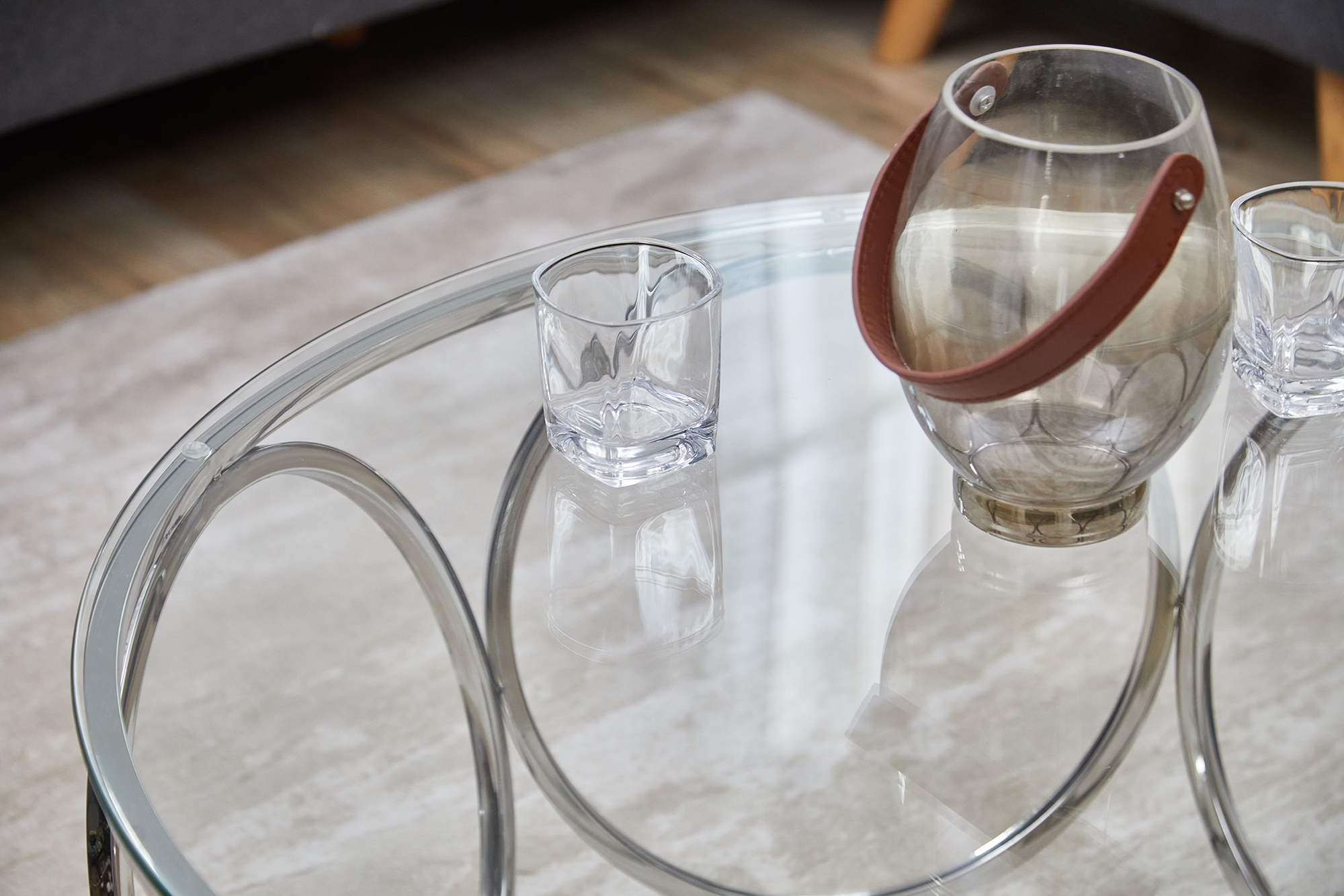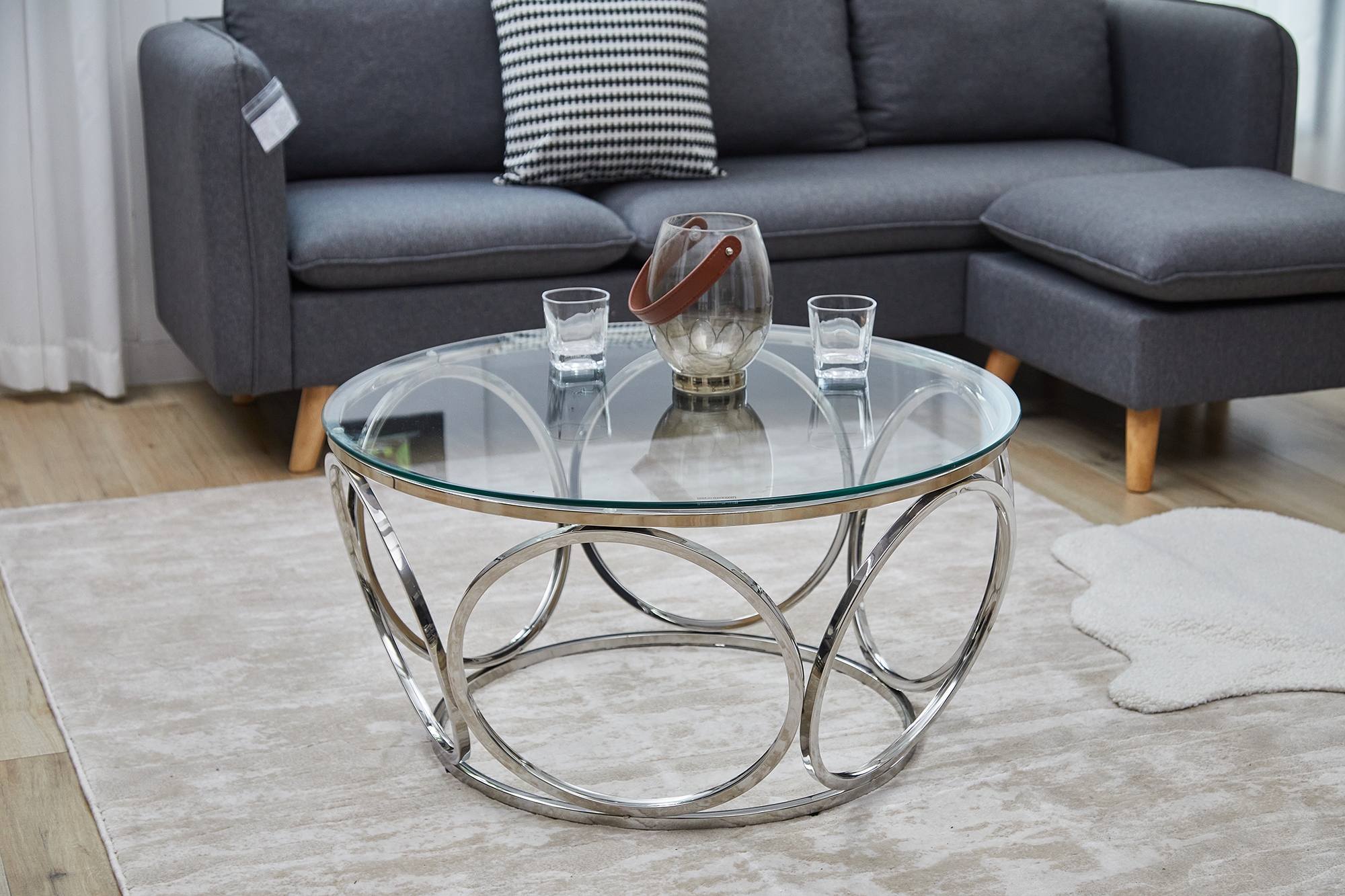 - Edler Couchtisch aus Glas mit silberfarbenem Metallgestell