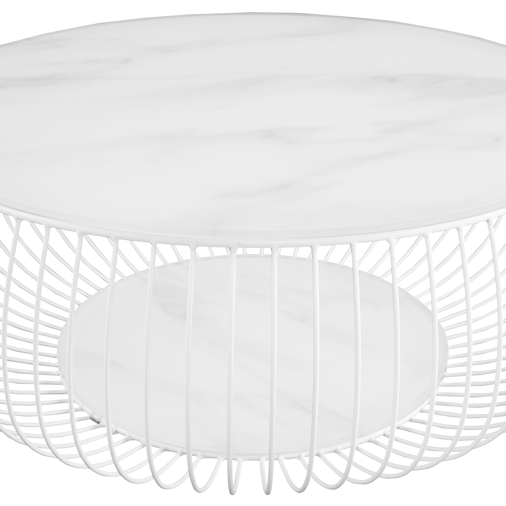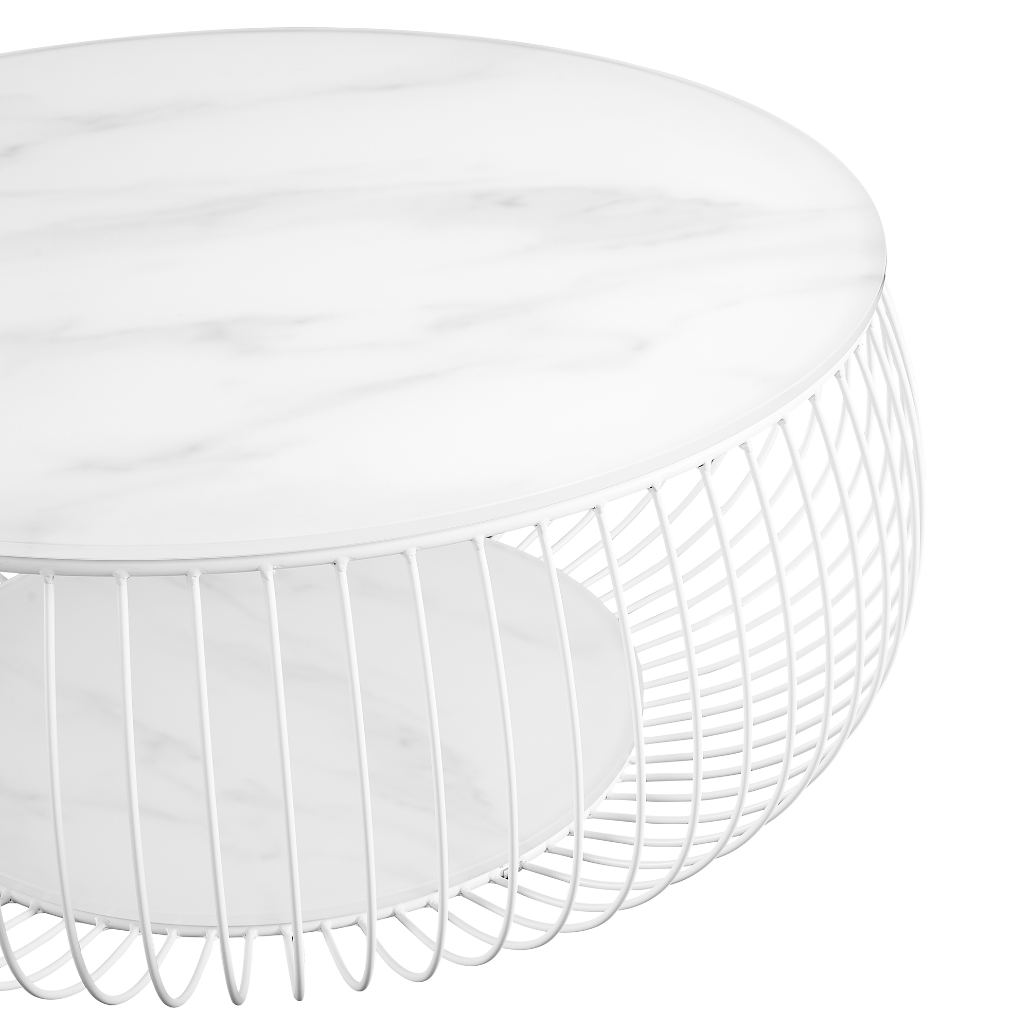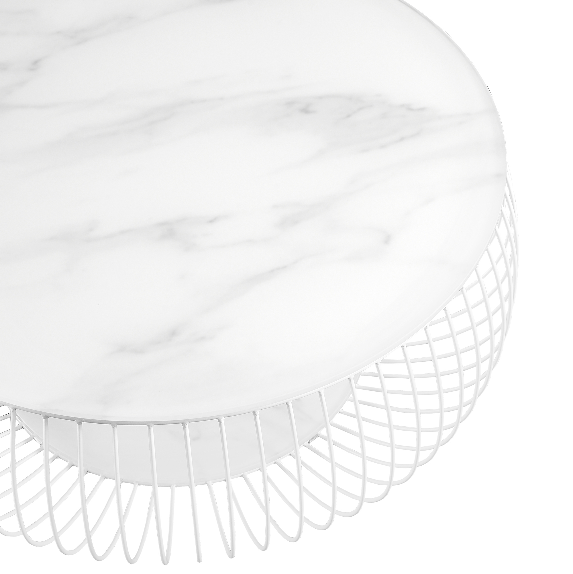 Der runde Couchtisch vereint modernes Design mit einer Portion Extravaganz. Die 10 mm starke Klarglasplatte mit ansprechendem Marmordruck vervollständigt mit dem Gestell aus pulverbeschichtetem Metalldraht in Weiß den coolen Look. Der Sofatisch bietet genügend Ablagemöglichkeiten für z.B. Zeitschriften, Obst, Knabbereien oder eine Blumenvase. Durch sein attraktives Design und die runde Form ist dieser Couchtisch mit vielen Möbeln kombinierbar und findet auch in Ihrem Zuhause ein geeignetes Plätzchen. Die Oberfläche des Couchtisches ist sehr pflegeleicht und strapazierfähig. Kleinere Verschmutzungen können mit einem leicht feuchten Tuch entfernt werden.