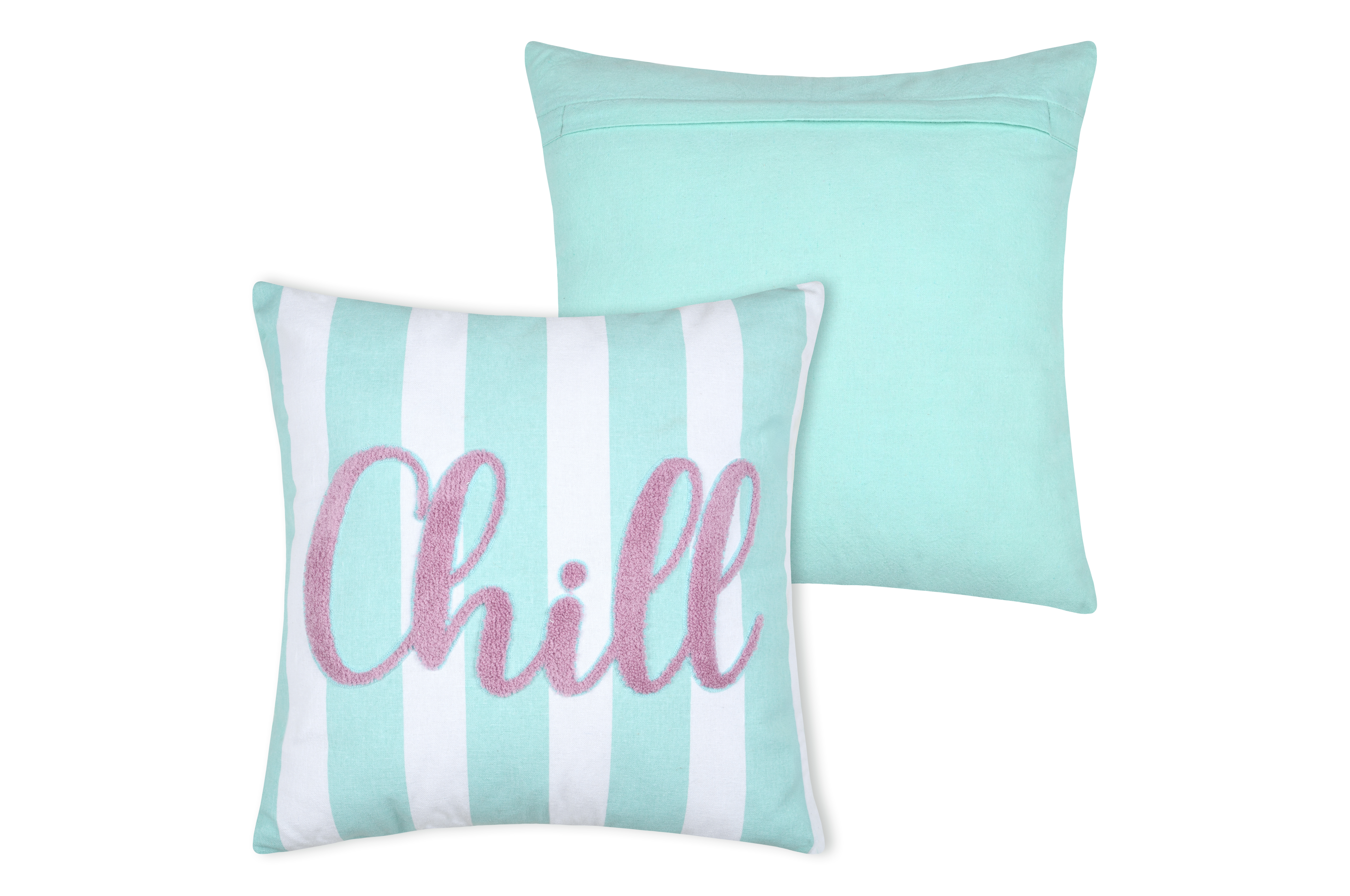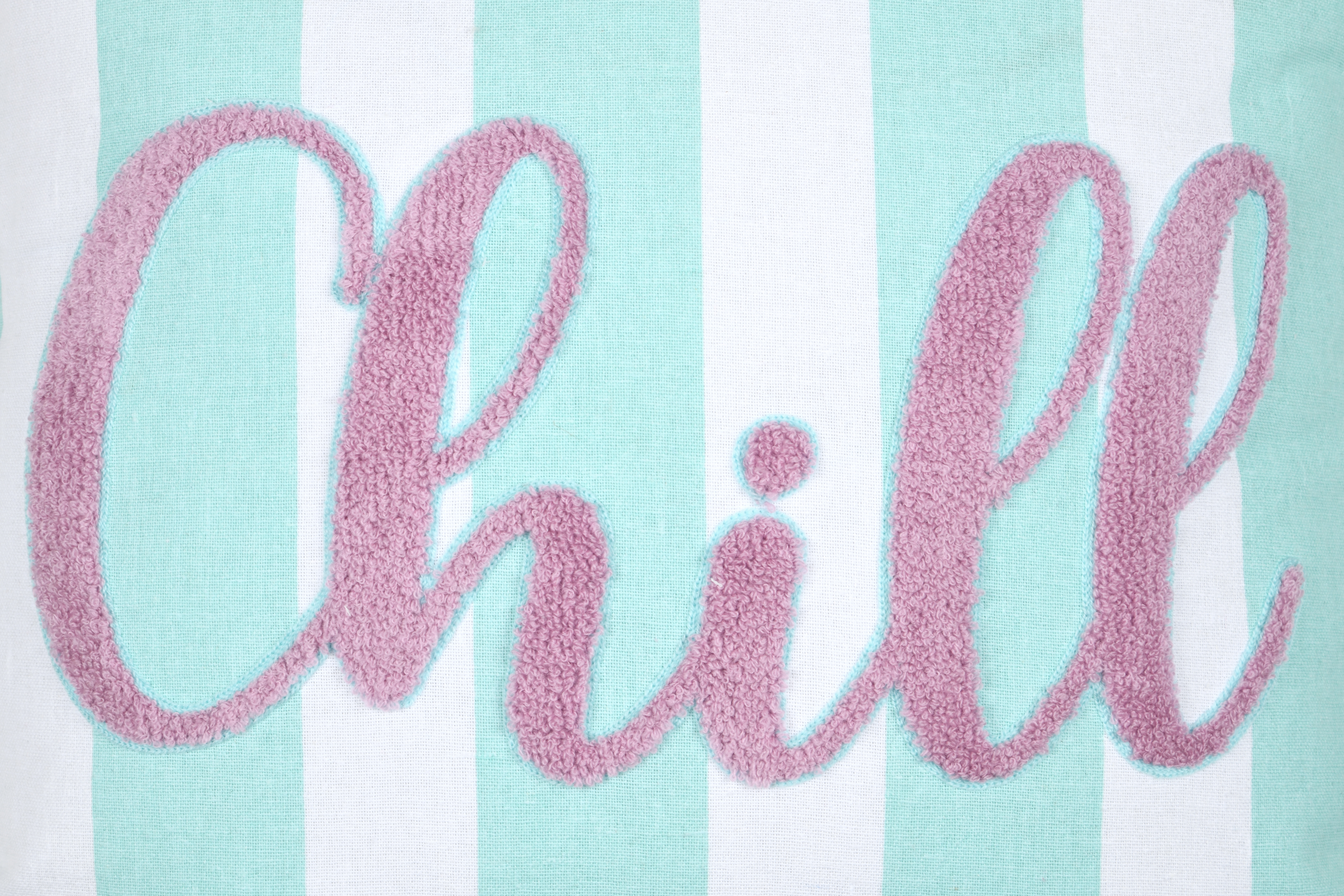 Farbe: türkis, weiß gestreift mit gesticktem Schriftzug Cill in pink, Rückseite uni türkis