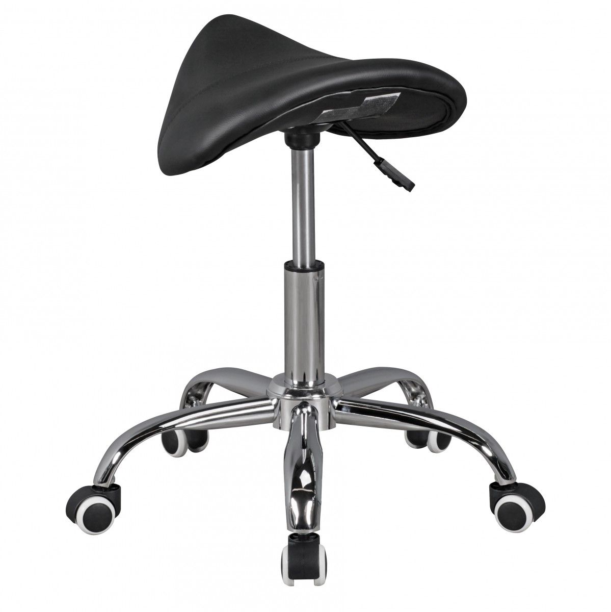 - Schwarze Kunstleder-Sitzfläche in Sattelform