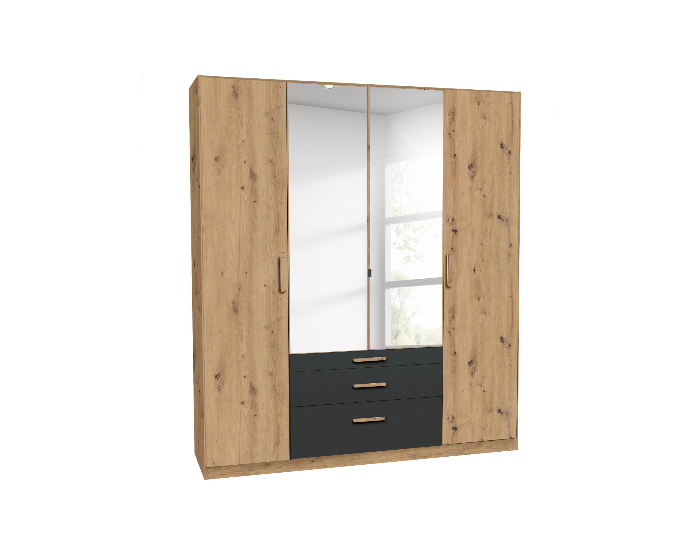 Front und Korpus: Artisan Eiche Holznachbildung kombiniert mit Absetzungen in grau metallic