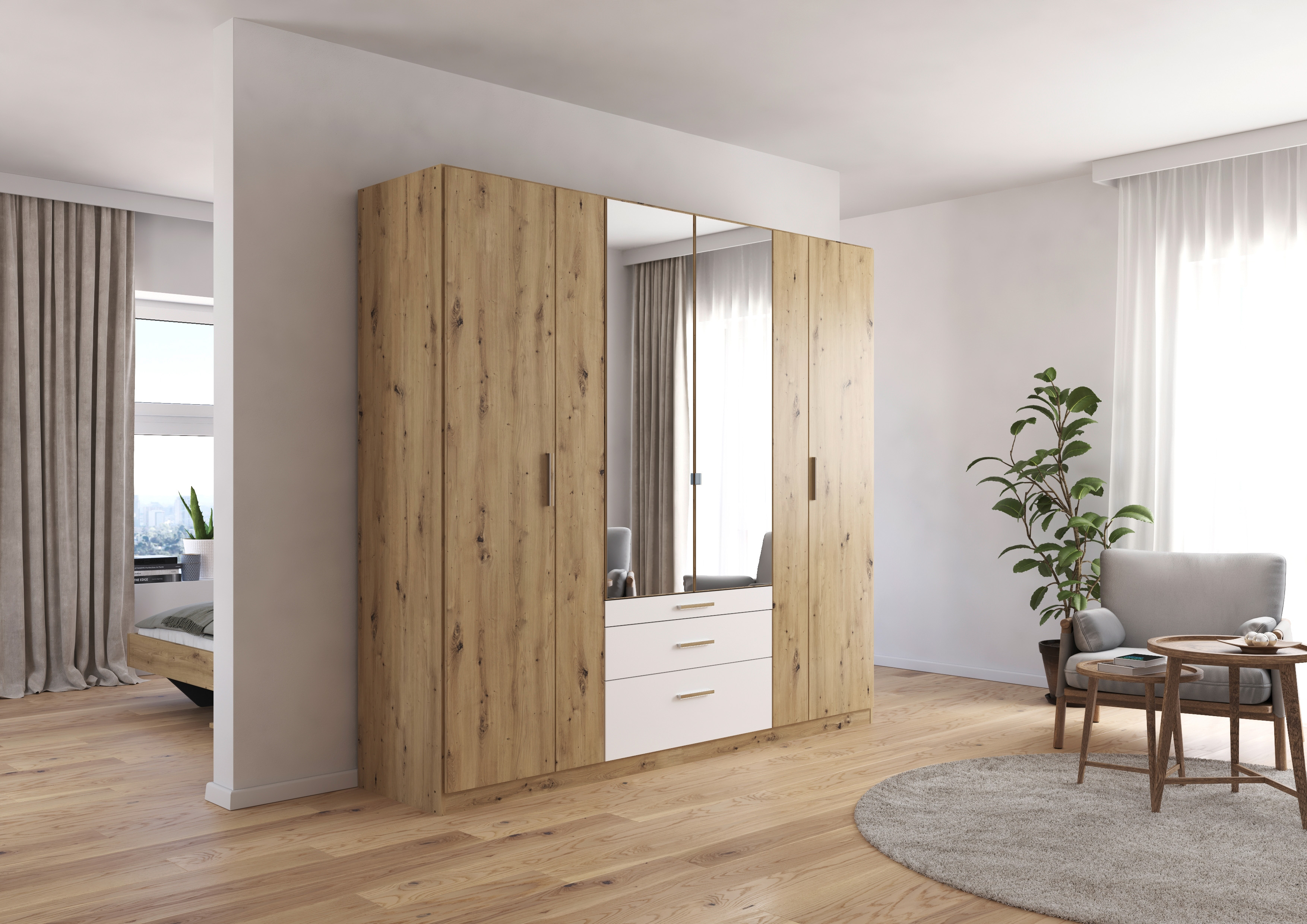 Front und Korpus: Artisan Eiche Holznachbildung kombiniert mit Absetzungen in alpinweiß