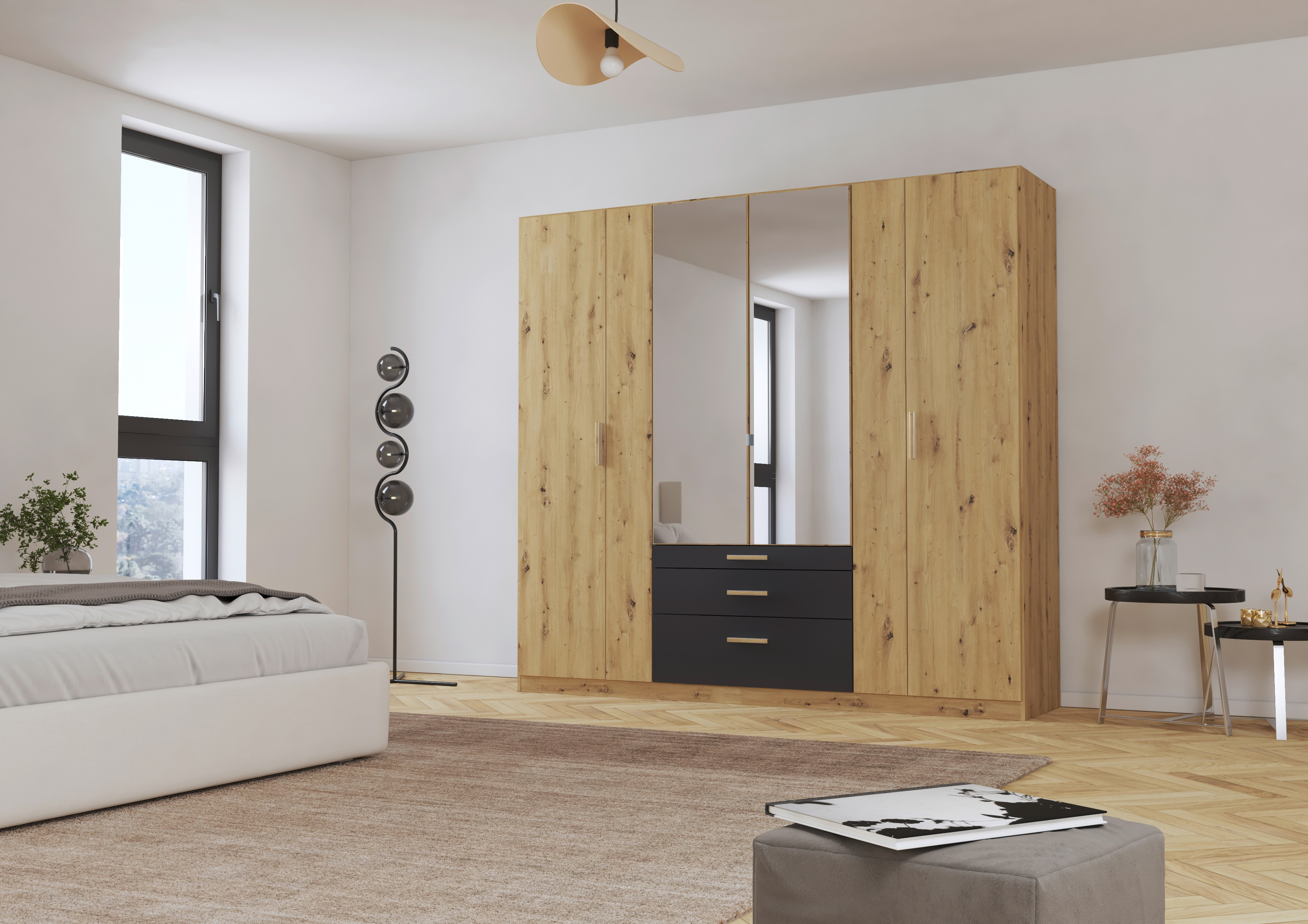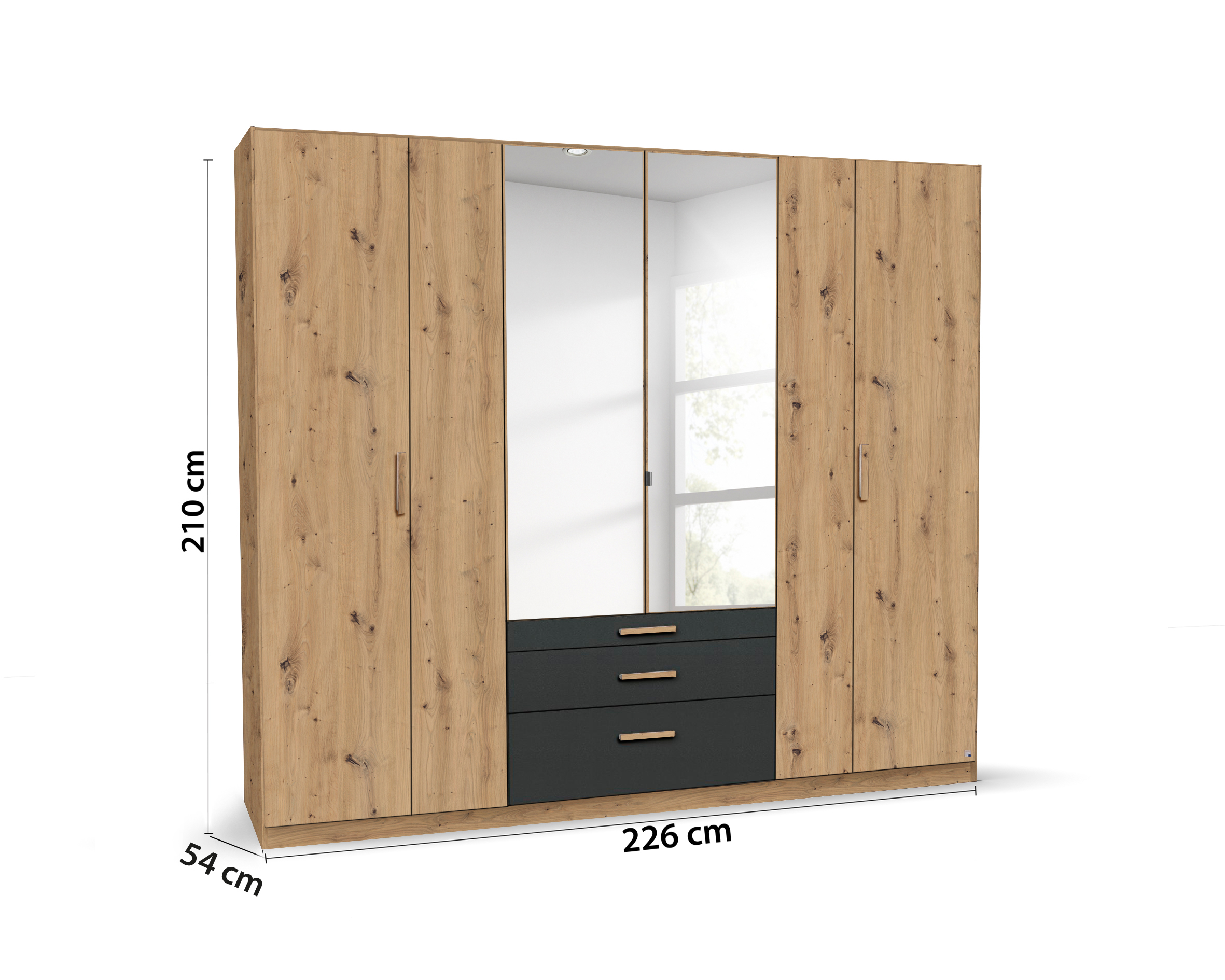 Front und Korpus: Artisan Eiche Holznachbildung kombiniert mit Absetzungen in grau metallic
