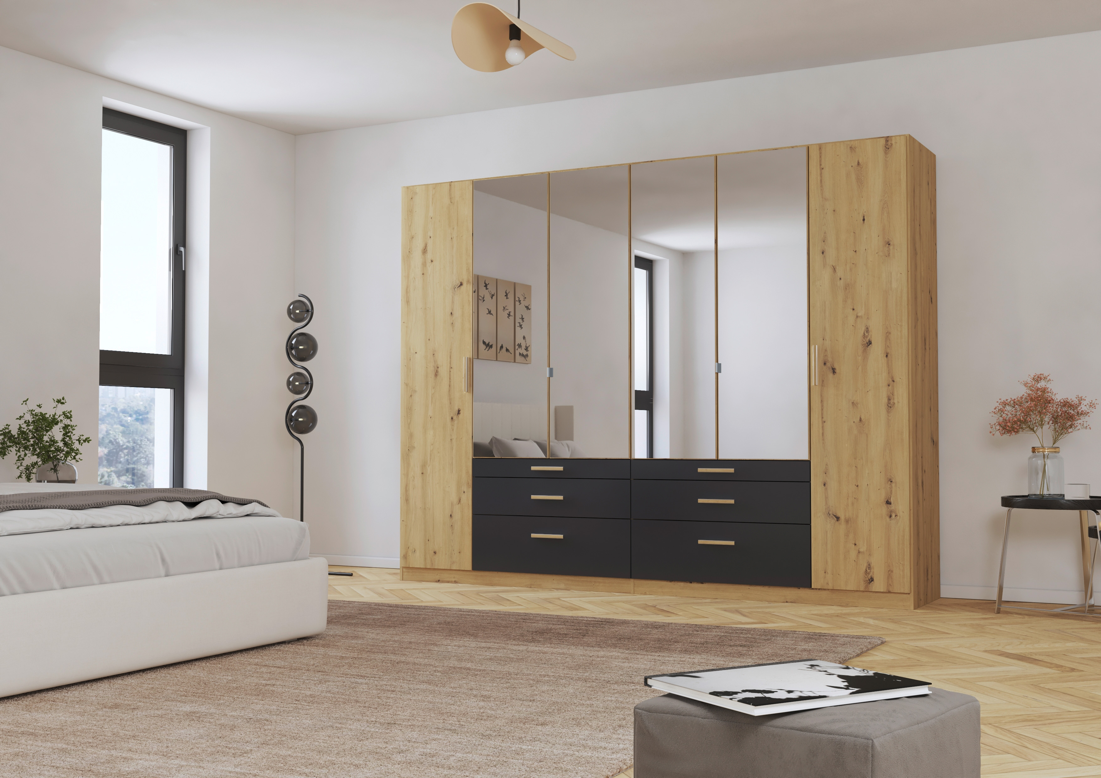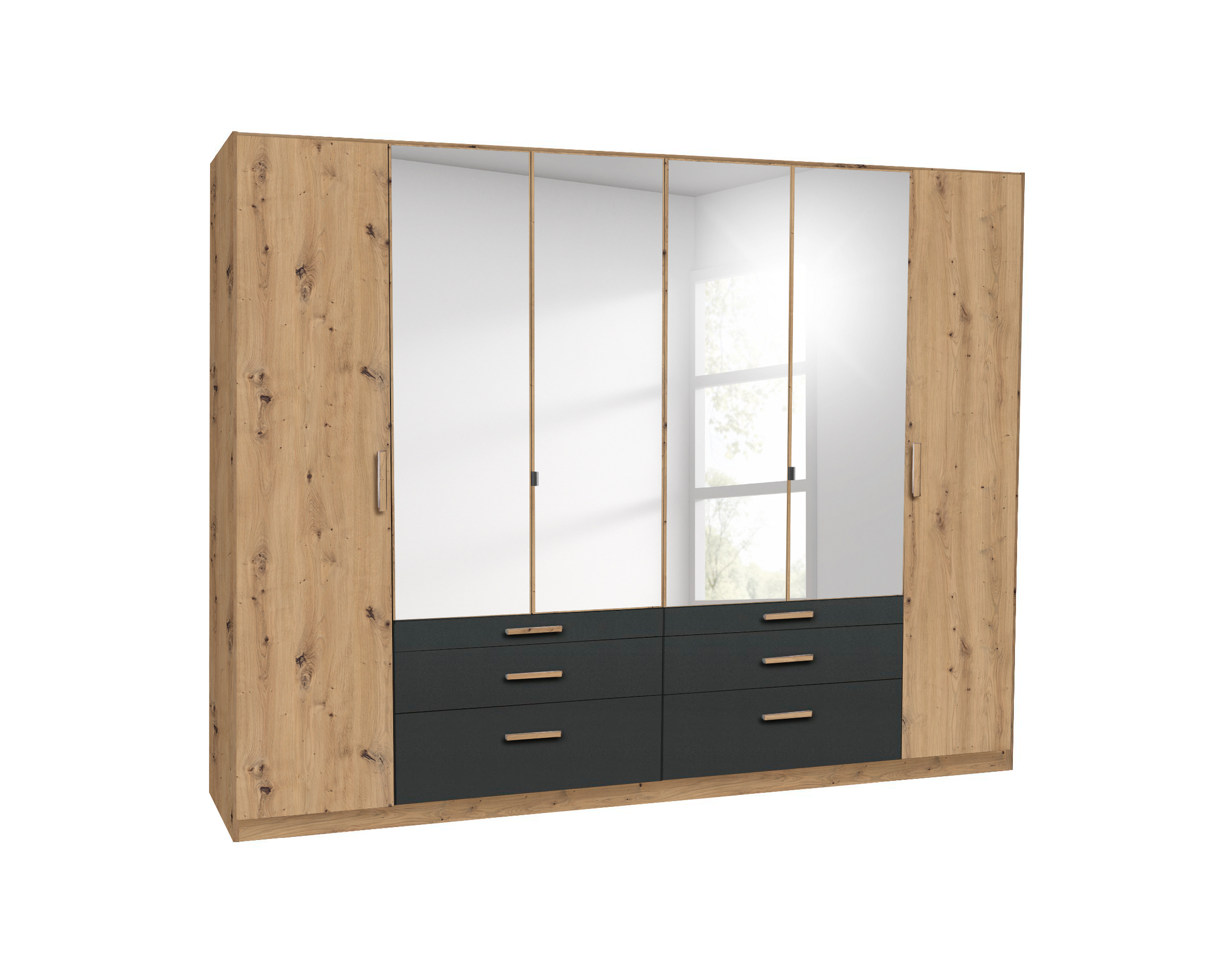 Front und Korpus: Artisan Eiche Holznachbildung kombiniert mit Absetzungen in grau metallic