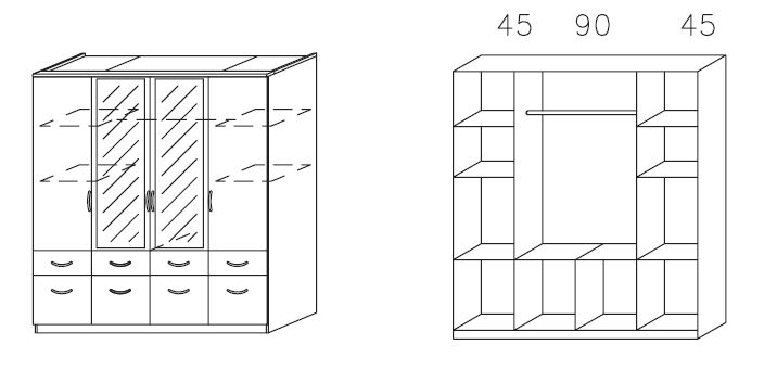 | Ausstattung Schränke: | Schublade(n), Spiegel |