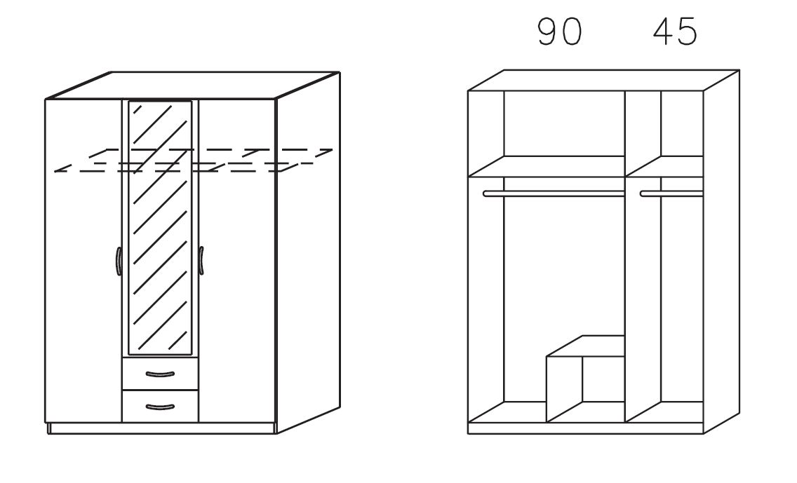 | Ausstattung Schränke: | Schublade(n), Spiegel | ||