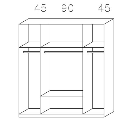 3 Schrankabteile mit je 1 Fachboden und 1 Kleiderstange