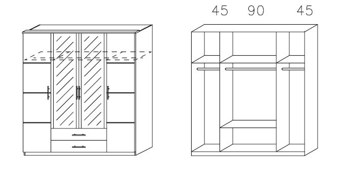 | Ausstattung Schränke: | Schublade(n), Spiegel |