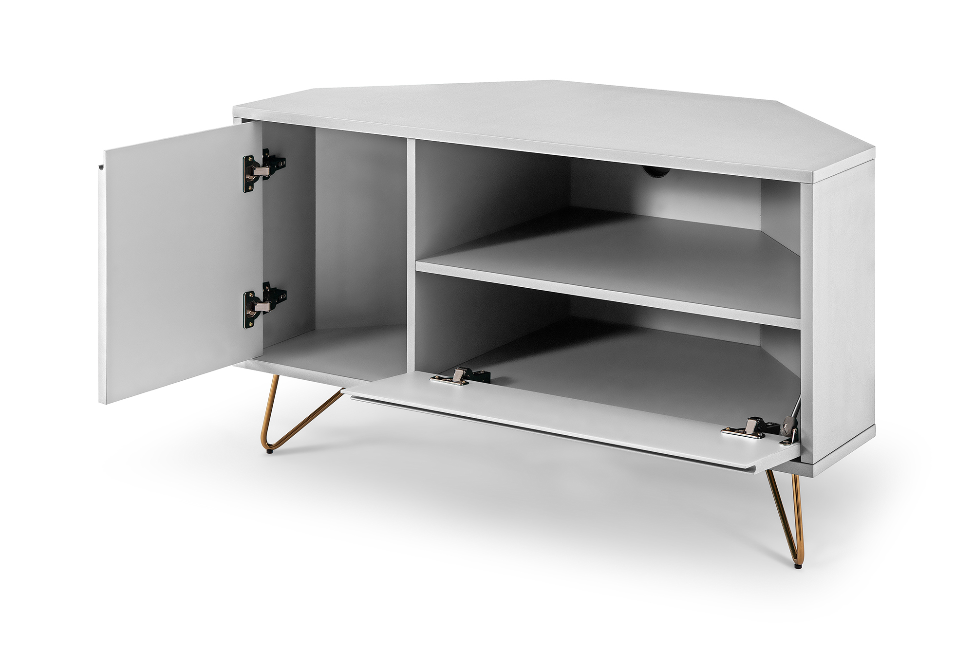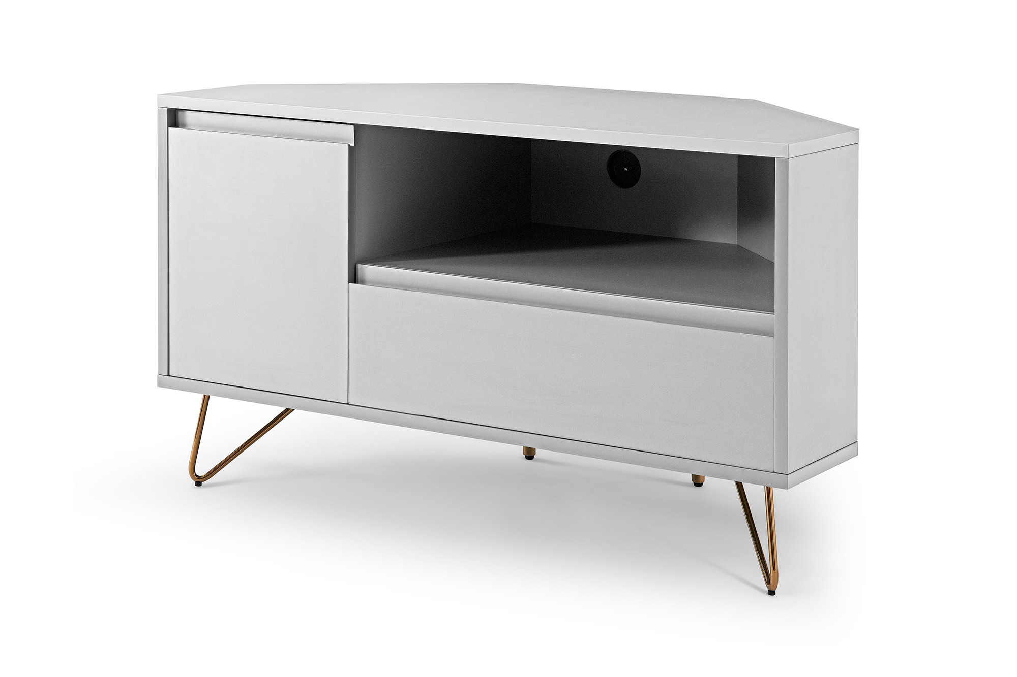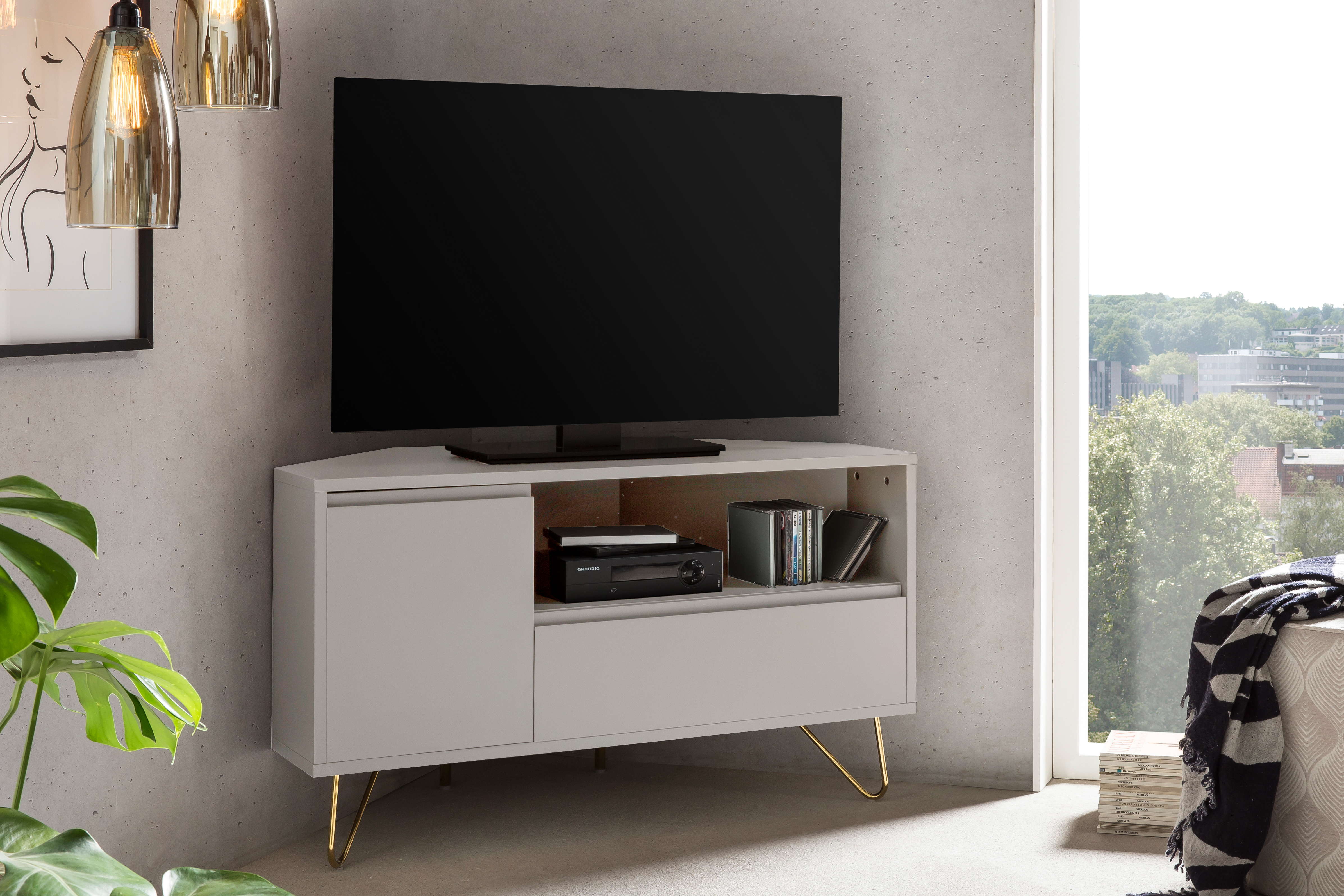 - Eck TV-Lowboard im skandinavischen Design in matt weiß lackiert