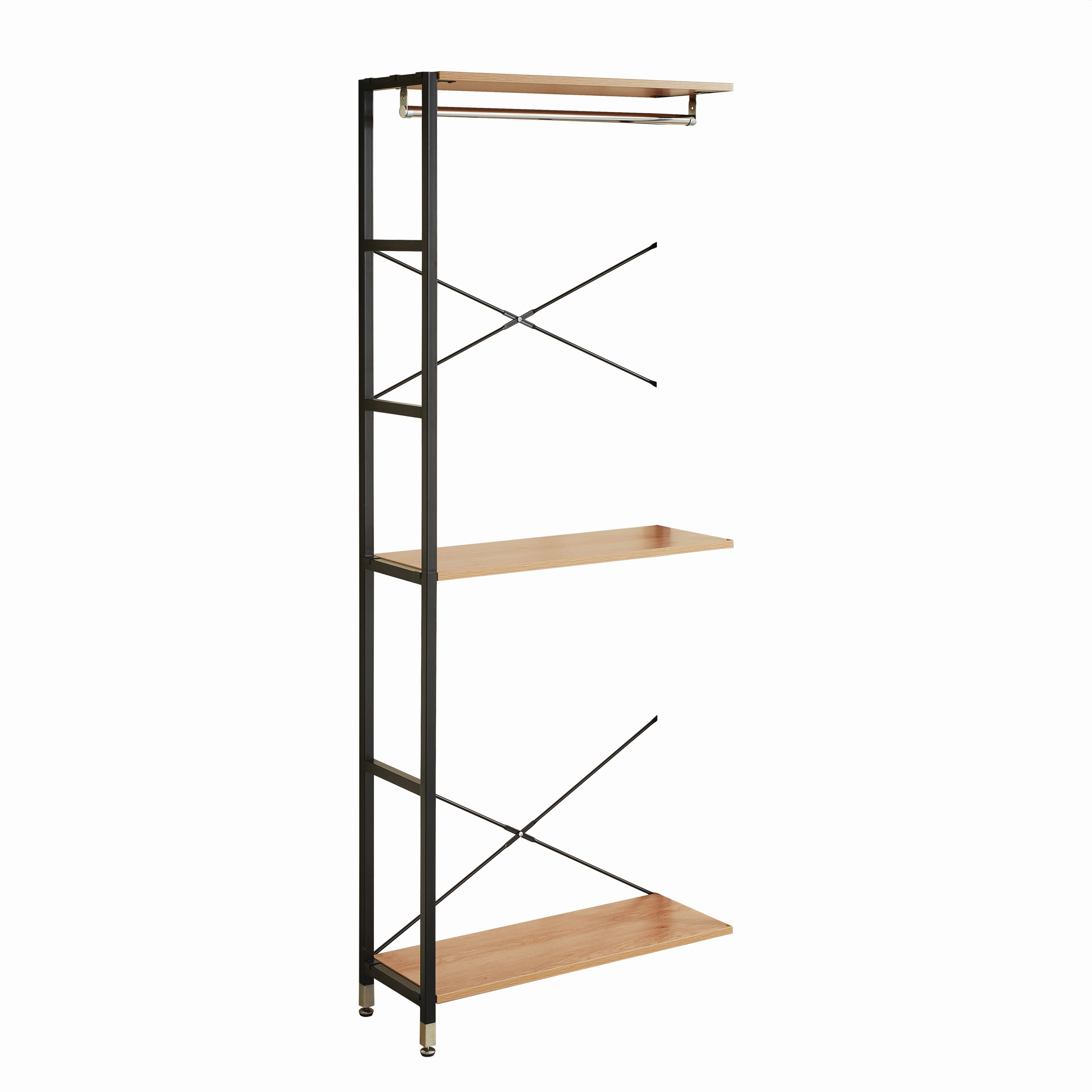 1 breites Regal mit 3 Böden und 1 Kleiderstange