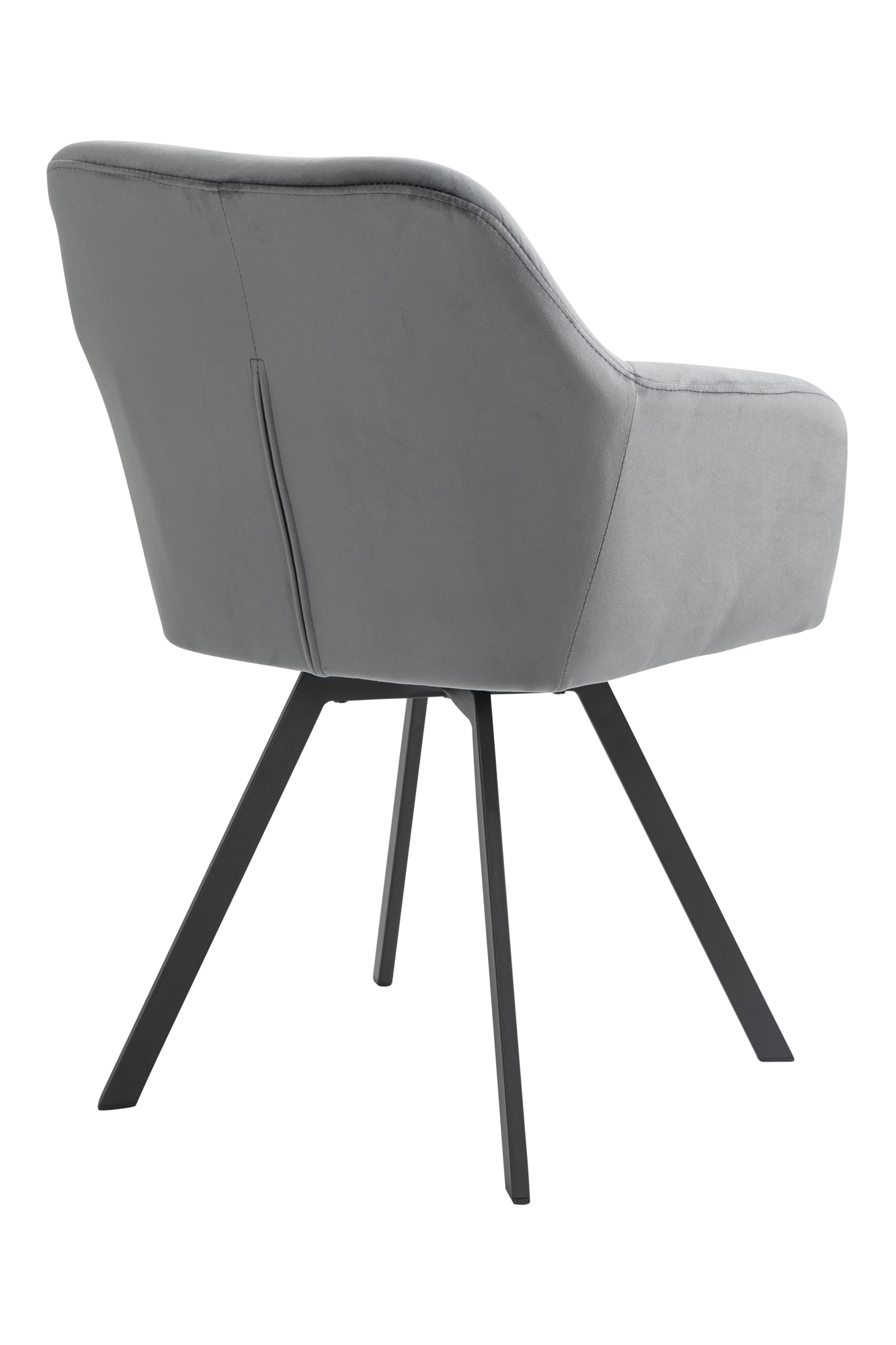 Vintage-Flair mit glamourösem Touch: Die 5-teilige Essgruppe besteht aus einem Tisch aus massiver Akazie, sowie 4 Armlehnstühlen mit edlem Samt-Bezug. Die 26 mm starke Tischplatte aus massiver Akazie wird mit OSMO Hartwachs-Möbelöl in seidenmattem Finish behandelt, so dass der Tisch vor Wasser, Schmutz und Abrieb geschützt ist. Besonderes Highlight: Das U-Gestell aus schwarz lackiertem Metall verleiht dem Tisch eine sehr gute Stabilität und ist das passende Gegenstück zur Tischplatte in warmem Walnusston. Mit diesem Esstisch mit echter Baumkante holen Sie sich ein Stück Natur in die eigenen vier Wände. Die Stühle setzen passend dazu schicke Akzente. Die üppige Polsterung der Sitzfläche und Armlehnen sorgt für optimalen Sitzkomfort, der hochwertige Look wird abgerundet durch die Knopfheftung im Rücken und das robuste Gestell, bestehend aus vier abgeschrägten Beinen in pulverbeschichtetem schwarzem Metall. Der Extraclou des Stuhls: Die 360° Drehfunktion, die für Bewegungsfreiheit und Komfort sorgt. Hinweis: Da es sich bei diesem Massivholztisch um ein Naturprodukt handelt, kann es zu Astlöchern oder unterschiedlichen Farbschmückungen kommen, welche jedoch keine Fehler darstellen, sondern den individuellen Charakter des Echtholzes unterstreichen.
