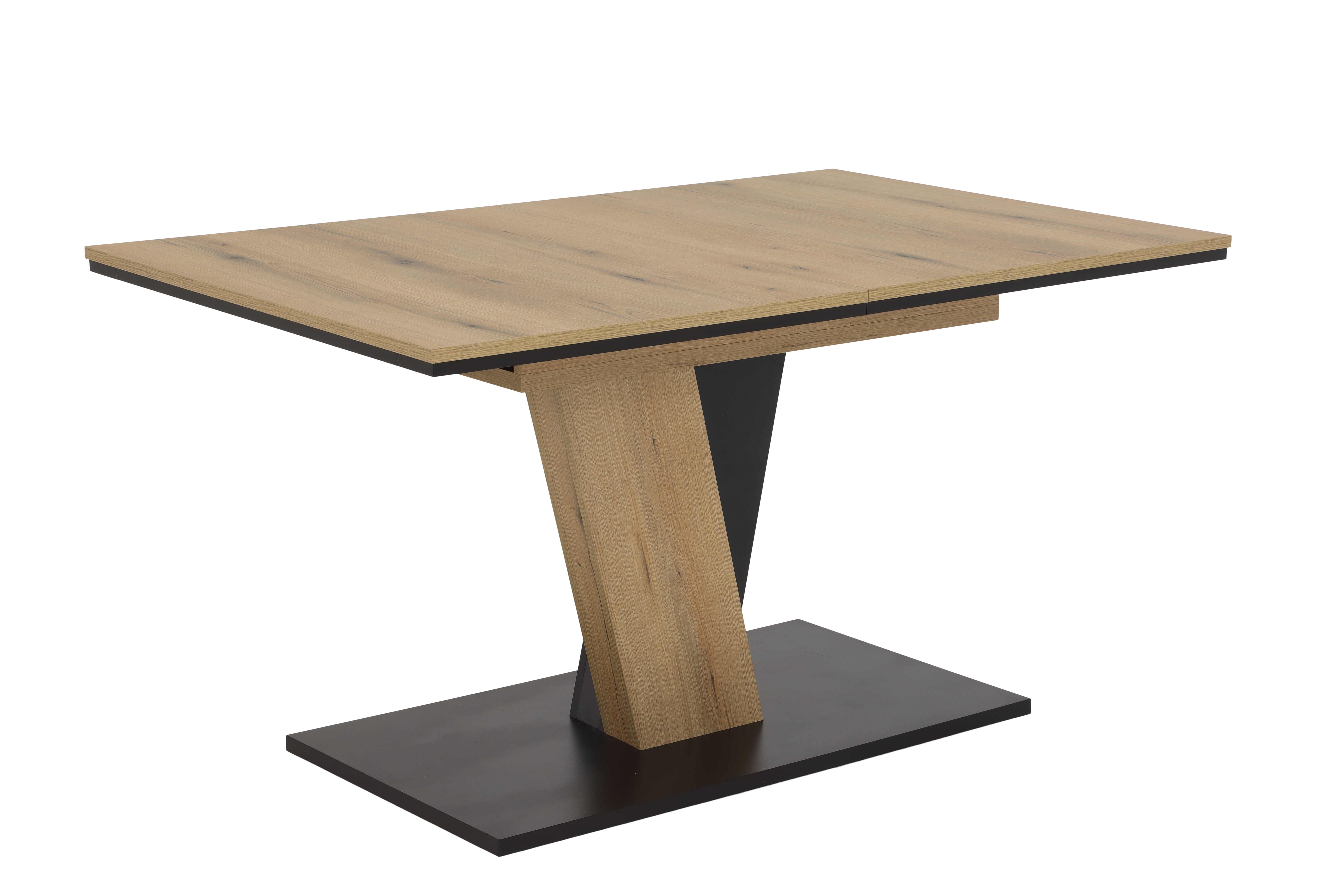 Tischplatte und Gestell: Evoke Eiche Holznachbildung mit Absetzungen in schwarz