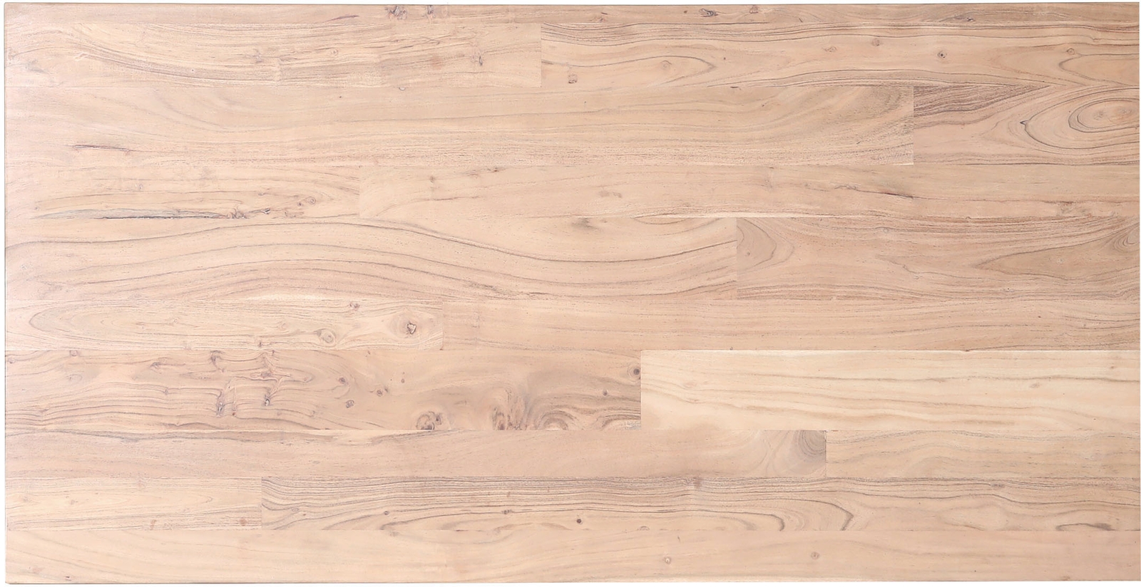 Akazie massiv (Asien) natur, gebeizt und lackiert mit einem Gestell in Stahl-Optik (Akazie massiv in schwarz lackiert)
