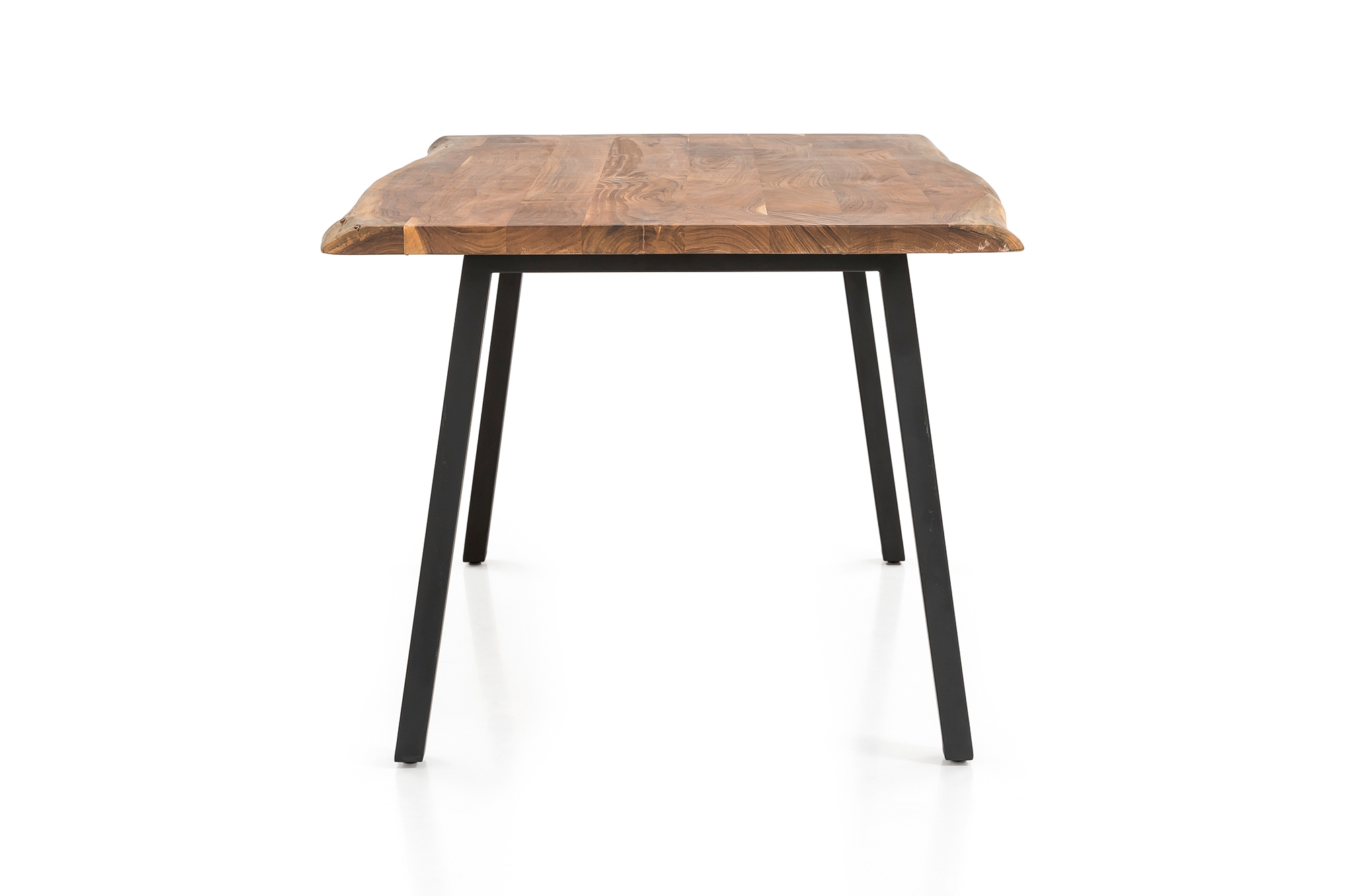 Massivholzmöbel aus Akazie gehören zu den zeitlos schönen Möbeln, die niemals aus der Mode kommen. Die 35 mm starke Tischplatte mit natürlicher Formgebung besteht aus Akazienholz. Dies wurde geölt und zweifach gewachst, somit ist die Oberfläche unempfindlich und feuchtigkeitsabweisend. Das stabile Gestell aus pulverbeschichtetem Metall in Mattschwarz verleiht dem Tisch eine sehr gute Stabilität und ist das passende Gegenstück zur schönen naturfarbenen Tischplatte. Dieser Esszimmertisch ist mehr als nur ein Sitzplatz zum Essen. Holen Sie sich ein Stück Natur in die eigenen vier Wände. Hinweis:Da es sich bei diesem Massivholztisch um ein Naturprodukt handelt, kann es zu Astlöchern oder unterschiedlichen Farbschmückungen kommen, welche jedoch keine Fehler darstellen, sondern den individuellen Charakter des Echtholzes unterstreichen. Auch die Tiefe kann aufgrund der natürlichen Formgebung variieren. Alle diese Unterschiede machen diesen Esszimmertisch zu einem echten Unikat.