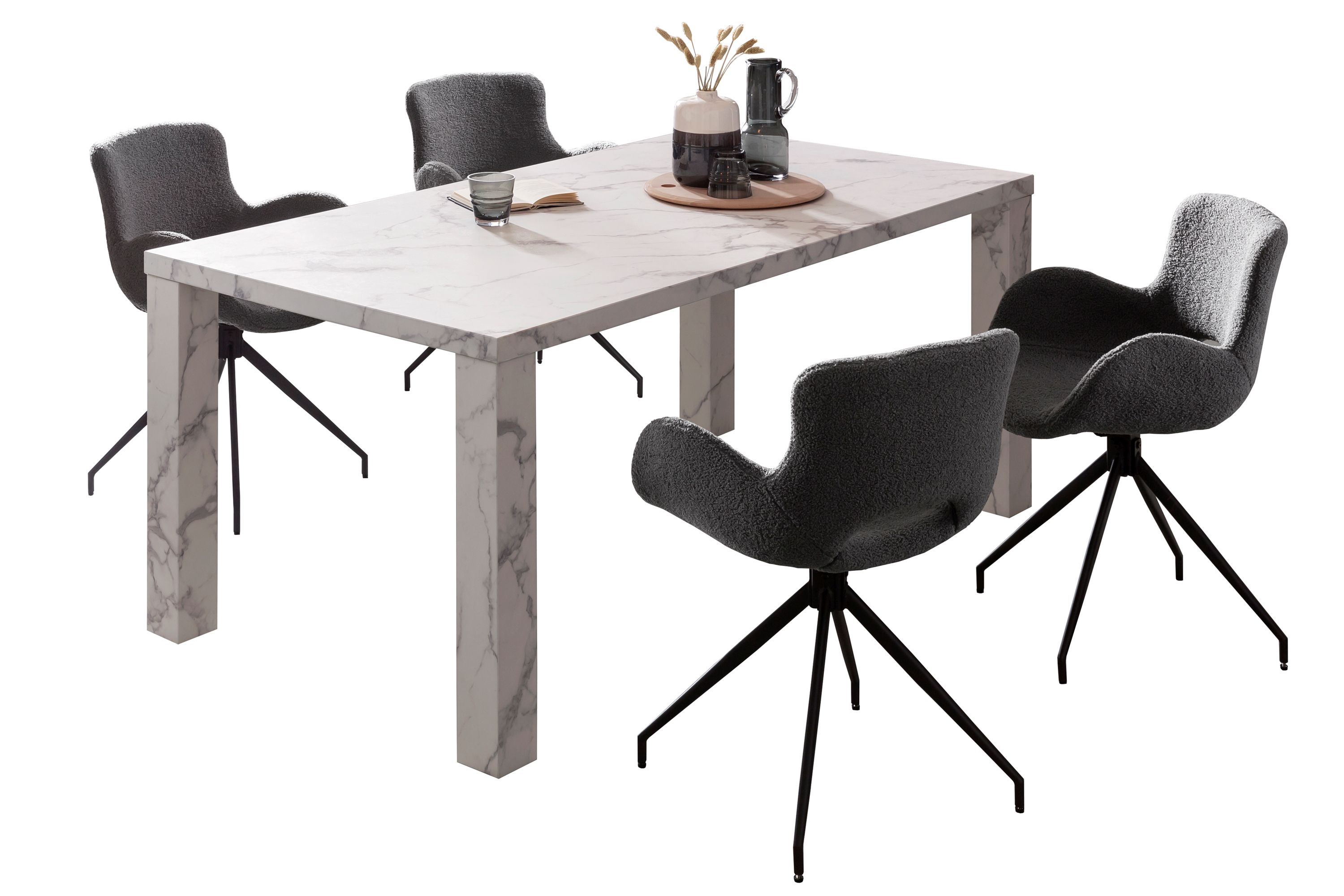 Dieser stylische Esstisch macht jeden Essbereich noch einladender. Der Tisch wurde aus hochwertigem MDF hergestellt. Die Oberfläche ist sehr widerstandsfähig gegen die allgemeinen Belastungen des Alltags. Die besonders breiten Beine und die weiße Marmoroptik machen richtig was her. Der Esstisch - egal ob in der Küche oder im Esszimmer - ist in vielen Wohnungen das Zentrum des gesellschaftlichen Lebens. Hier isst und trinkt man zusammen, man lacht, spielt und unterhält sich.