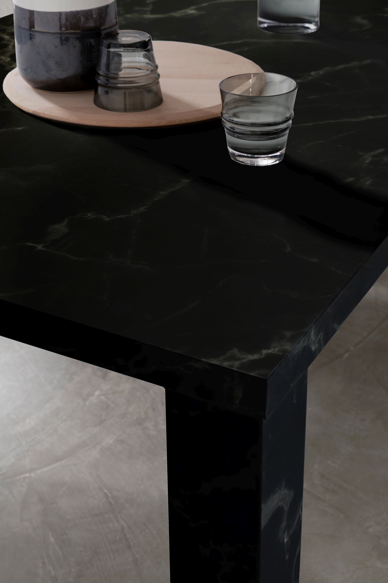 MDF (Mitteldichte Holzfaserplatte) mit Melaminfolie überzogen in schwarzer Marmoroptik