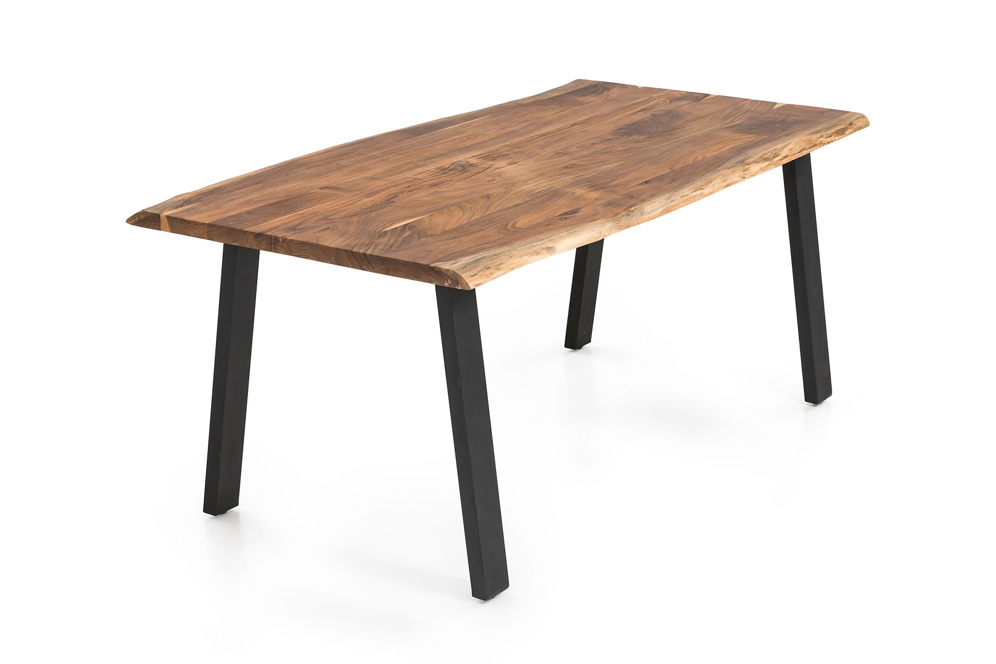 - Esstisch mit modernem Metallgestell, gefertigt aus massivem Akazienholz