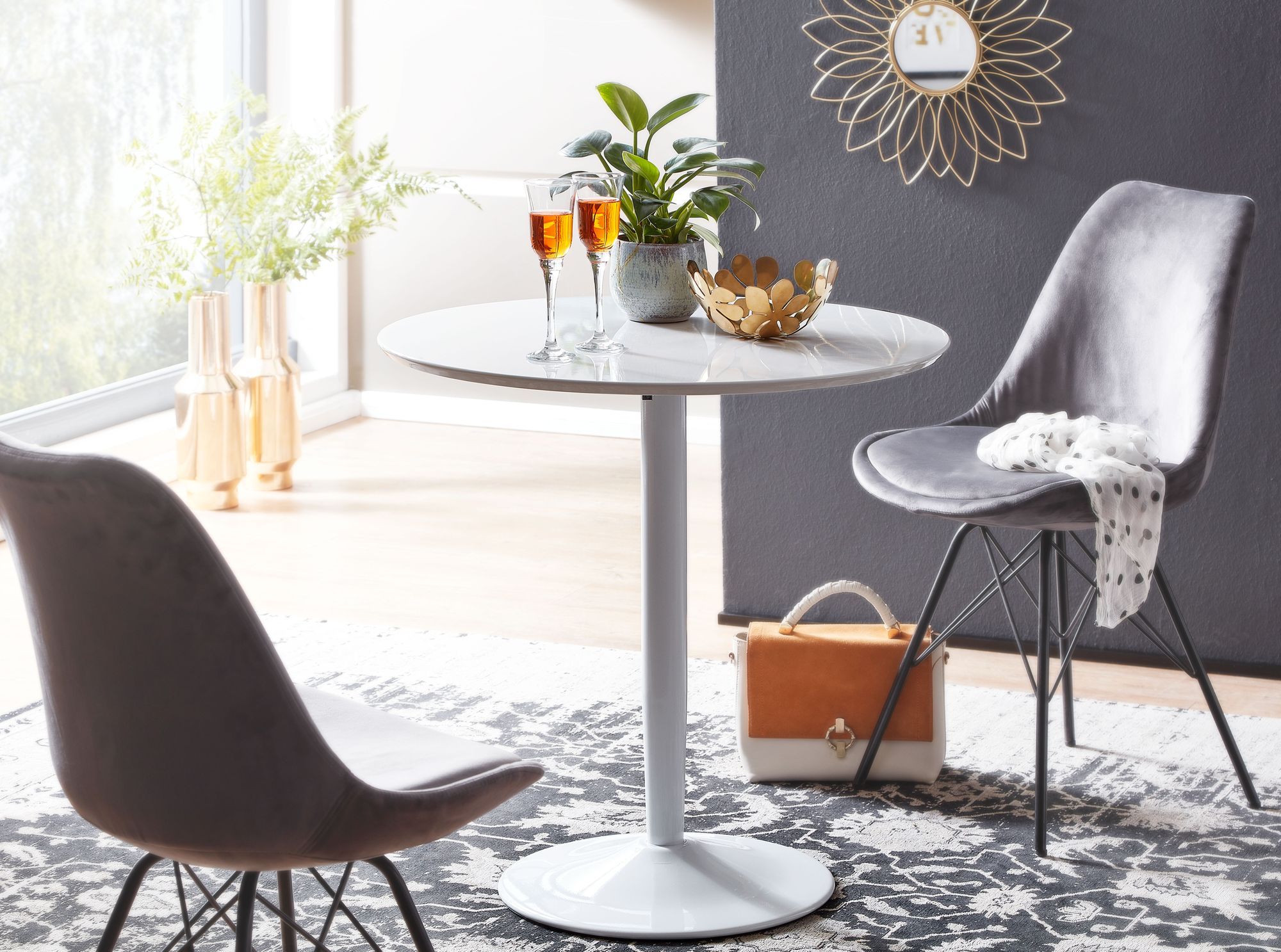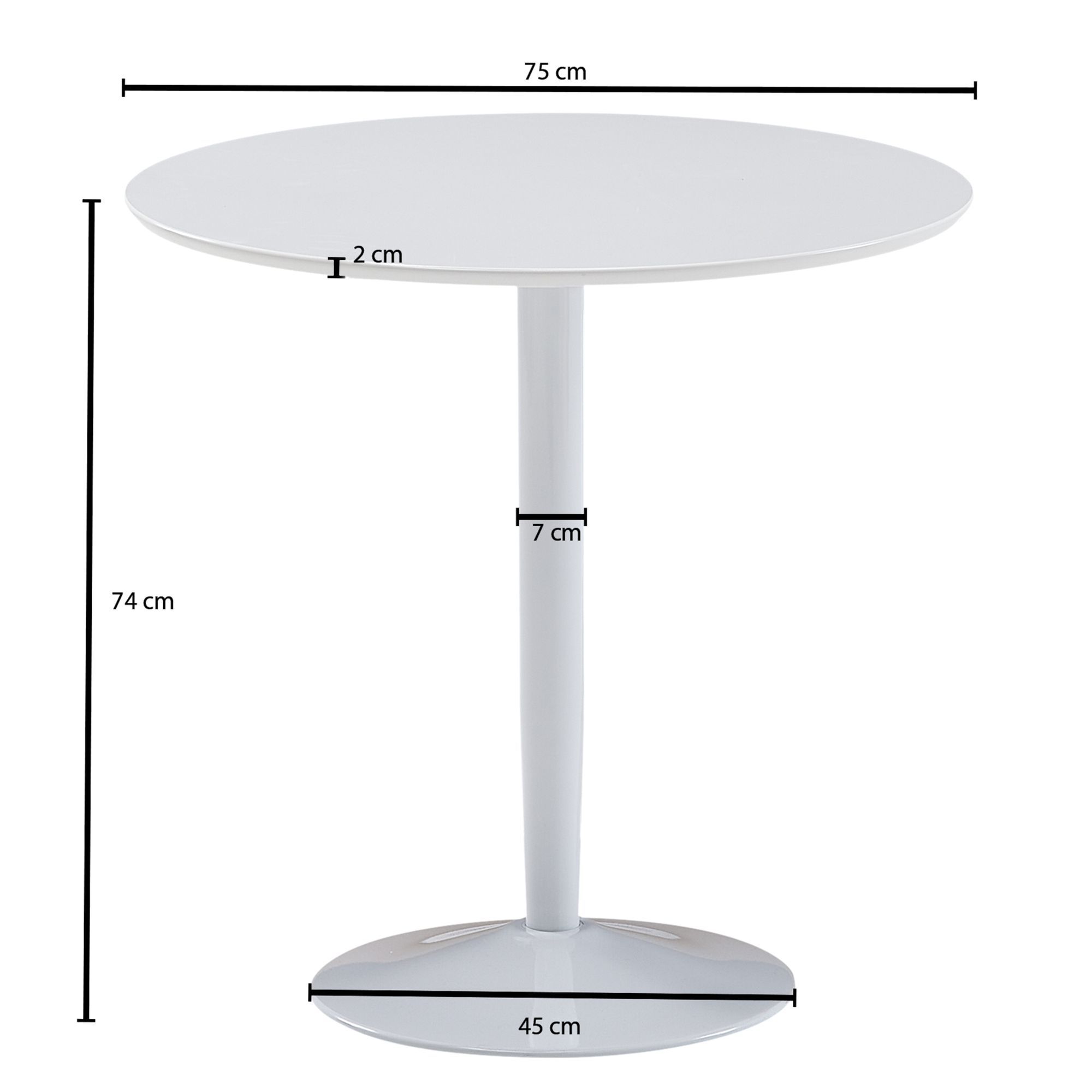 ABMESSUNGEN ✔ Breite: 75 cm // Tiefe: 75 cm // Höhe: 74 cm // Stärke der Tischplatte: 2 cm // Durchmesser Standbein: 45 cm // Weitere Abmessungen finden Sie im Maßbild.
