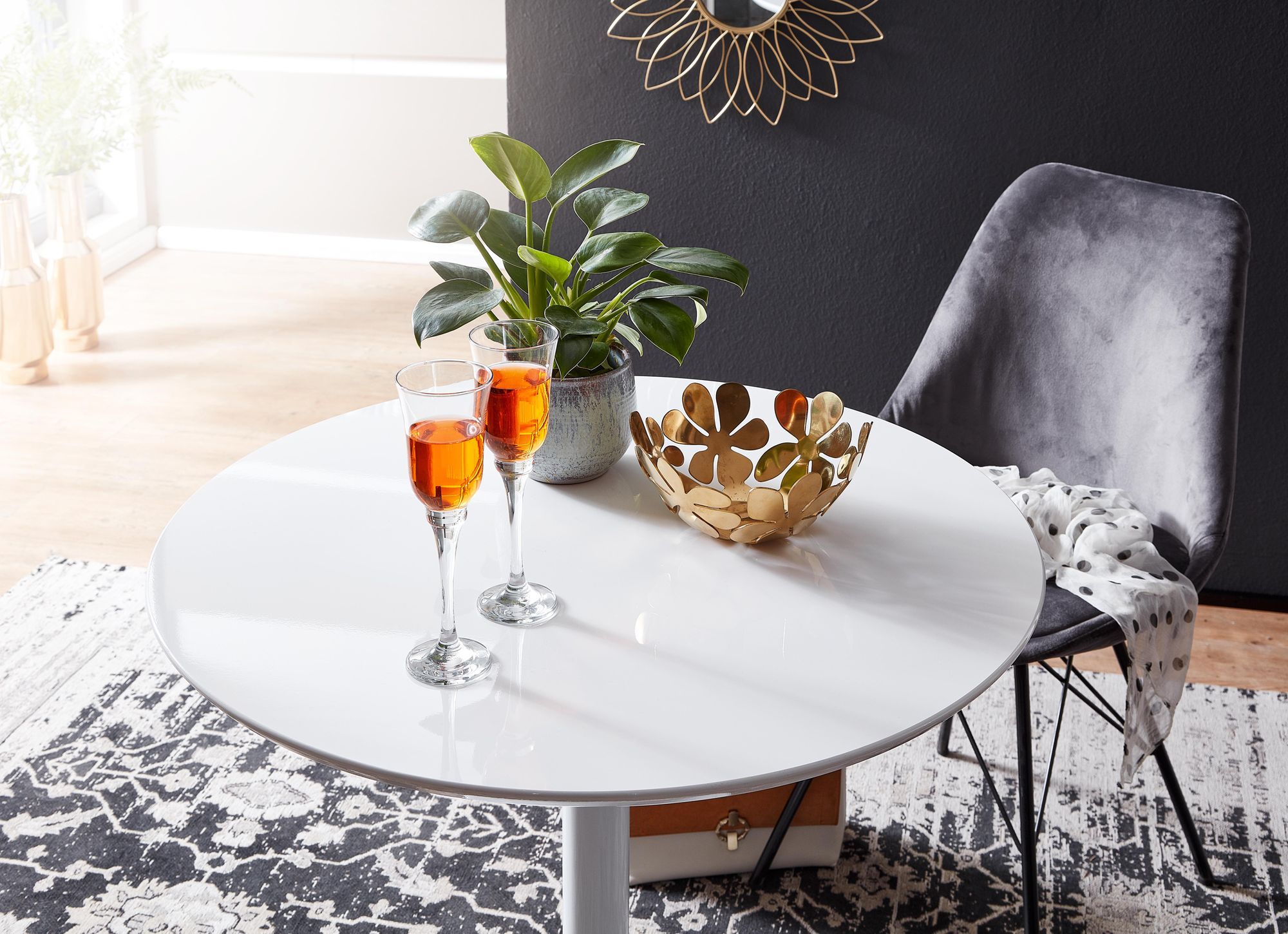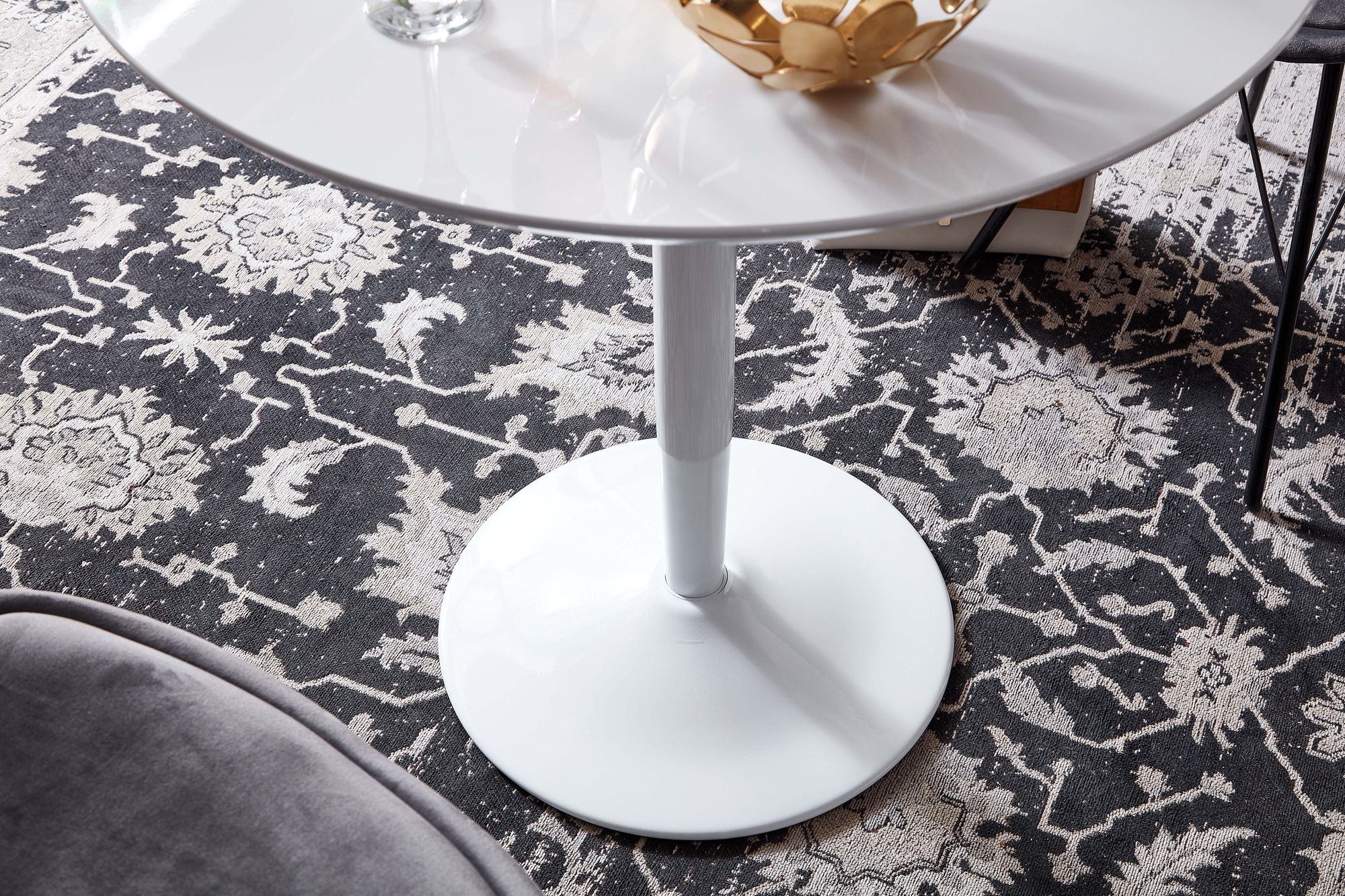 - Tisch mit Hochglanztischplatte und weißem Metallbein