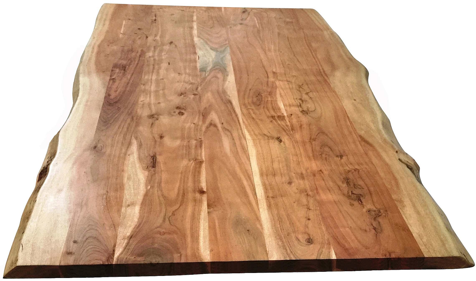 Tischplatte: Akazie massiv (Indien) mit Baumkante wie gewachsen, gebeizt, lackiert und gewachst