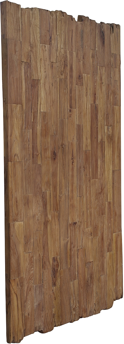Tischplatte: Receyceltes Teakholz massiv natur (Indonesien) mit unregelmäßiger Kante an den kurzen Seiten