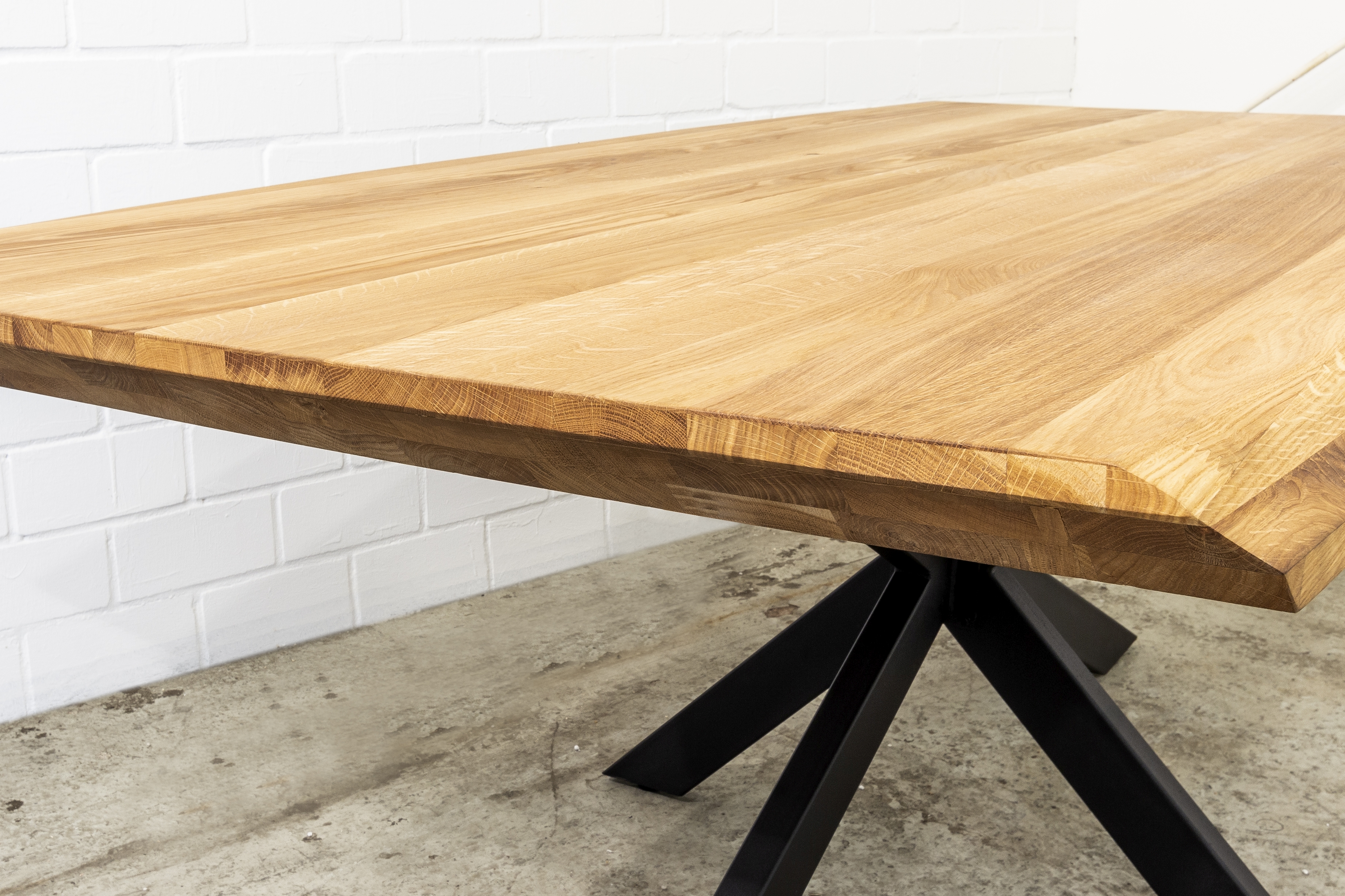 Tischplatte: Wildeiche massiv (Polen), geölt, durchgehende Lamelle