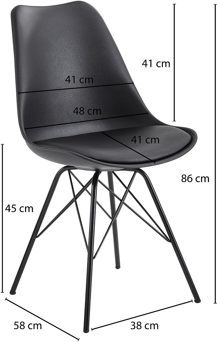 ABMESSUNGEN ✔ Breite: 48 cm // Höhe: 86 cm // Tiefe: 58 cm // Sitzhöhe: 45 cm // Sitzfläche (BxT): 48 x 41 cm // Maximalbelastbarkeit je Stuhl: 110 kg.