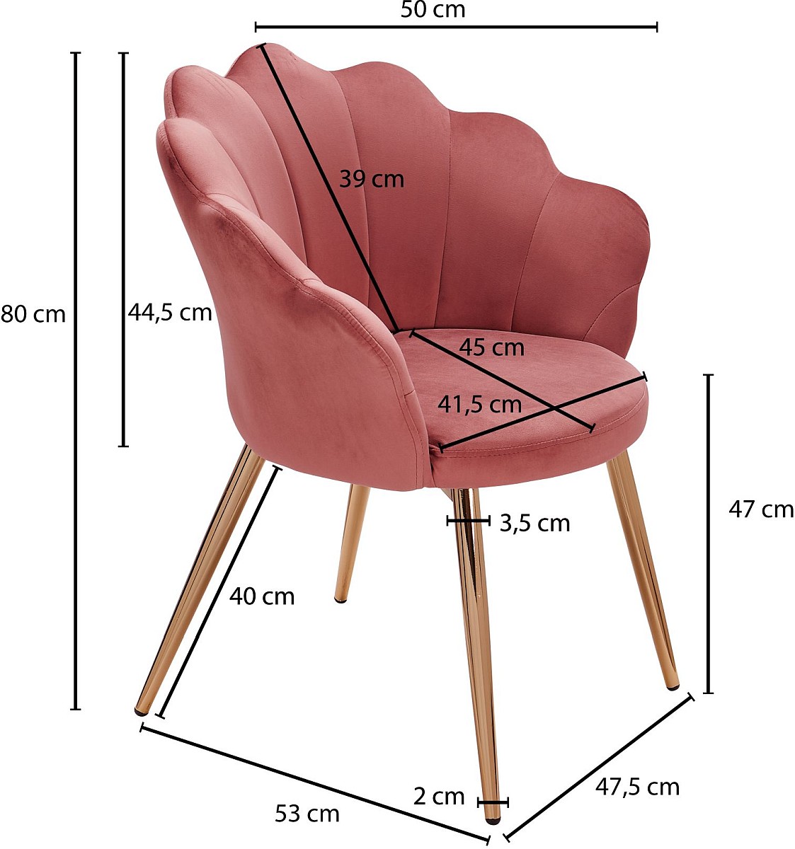 - Sitzfläche (BxT): 41,5 x 45 cm