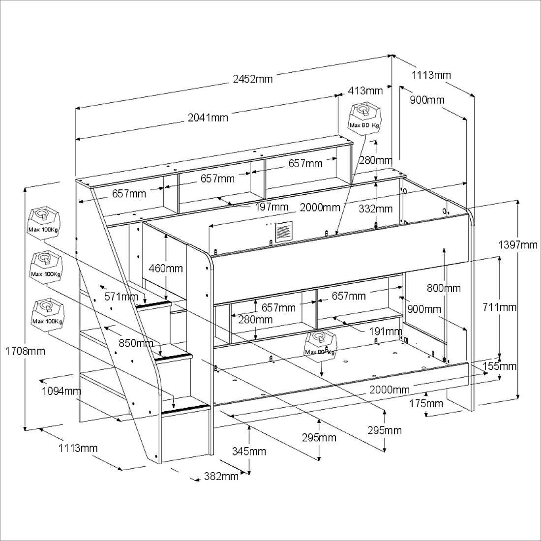 | Liegeflächen des Etagenbettes jeweils | 200 | 90 | |