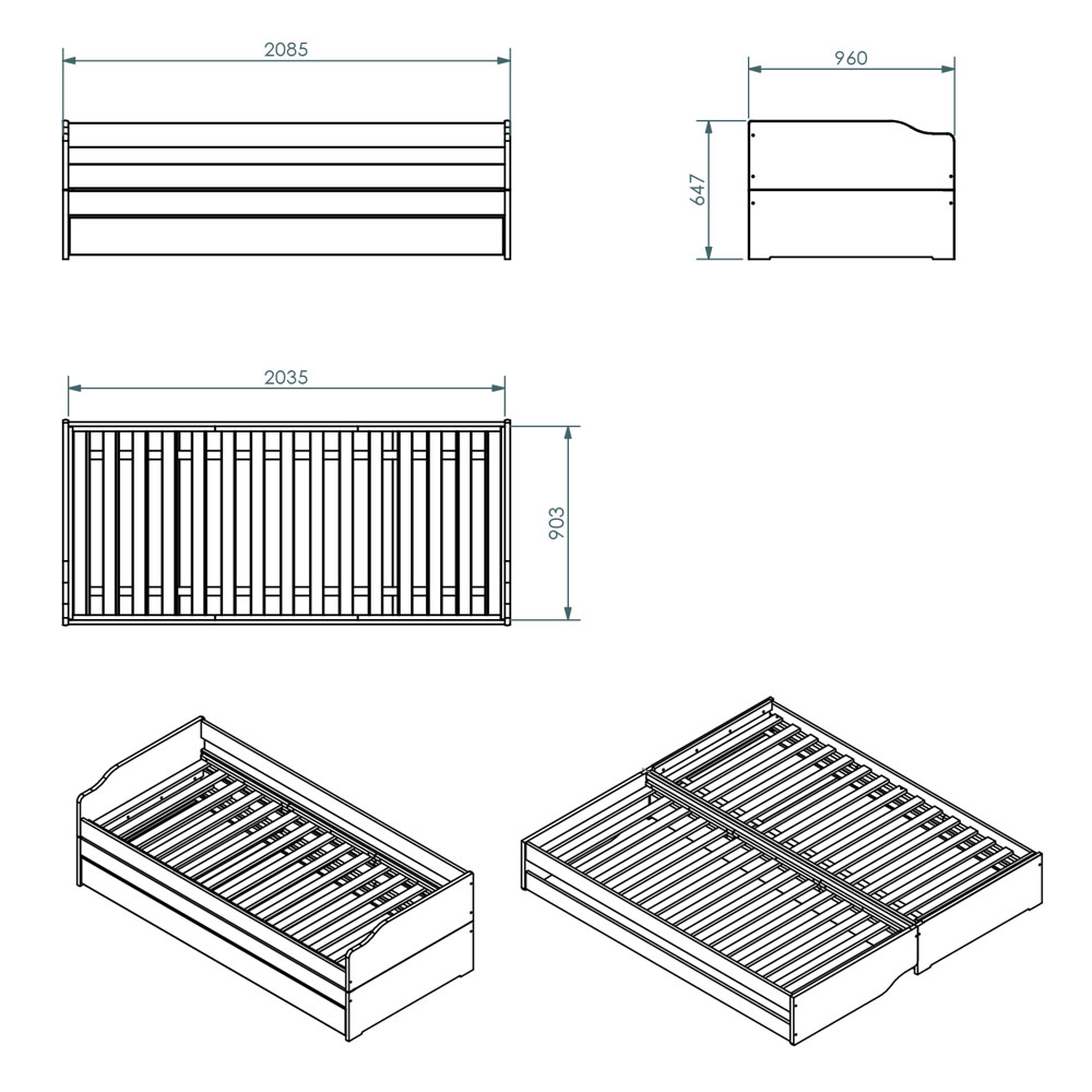 Dieses originelle Sofabett verfügt über drei Schlafplätze. Klappt man den oberen Rahmen um, entsteht ein Doppelbett. Eine weitere Liegefläche kann bei Bedarf wie eine Schublade herausgezogen werden. Der weiße Lack ist widerstandsfähig, pflegeleicht und wasserabweisend. Natürliche Holzmaserungen sind durch den Lack erkennbar, was dem Bett eine warme und natürliche Ausstrahlung verleiht.