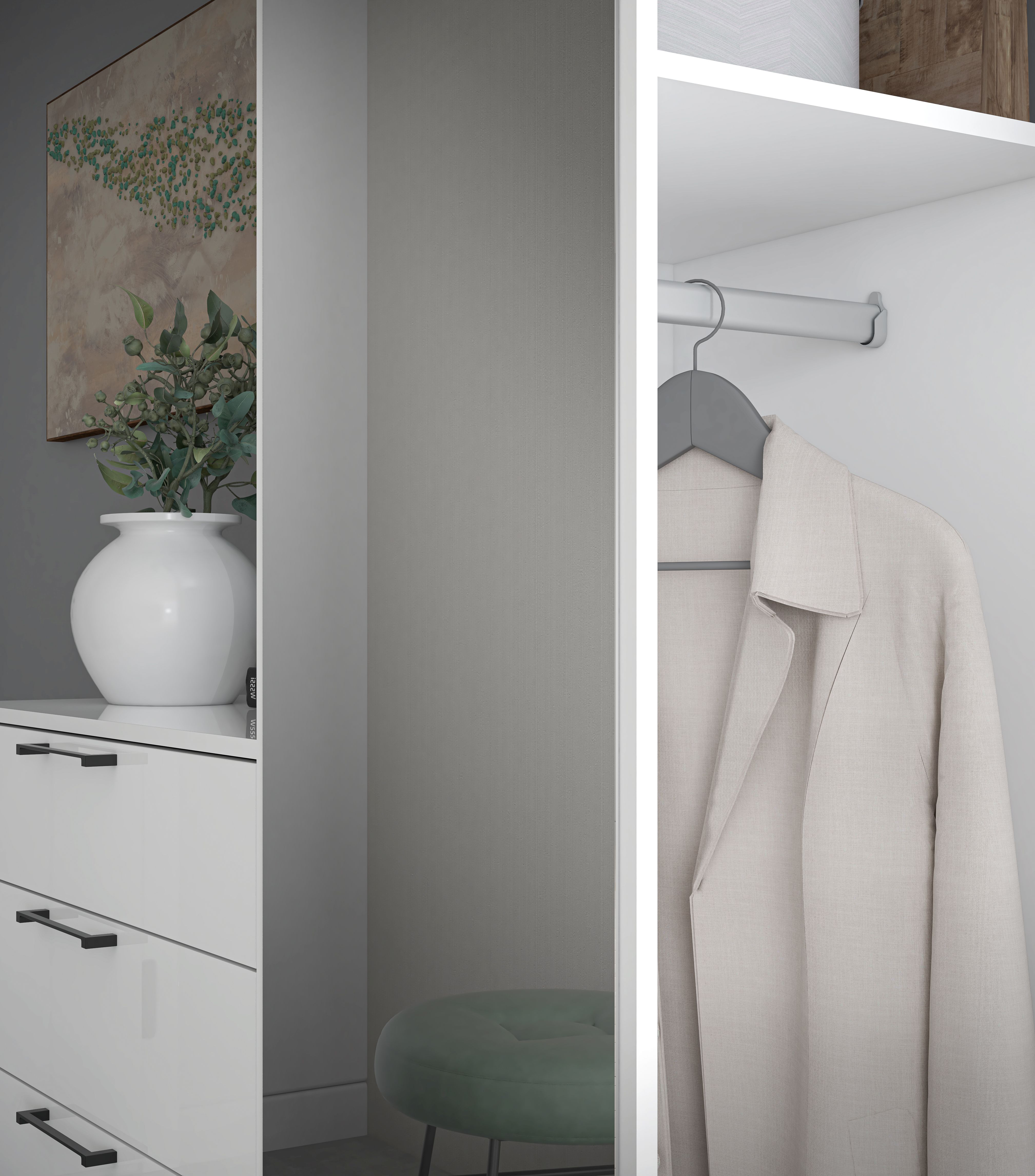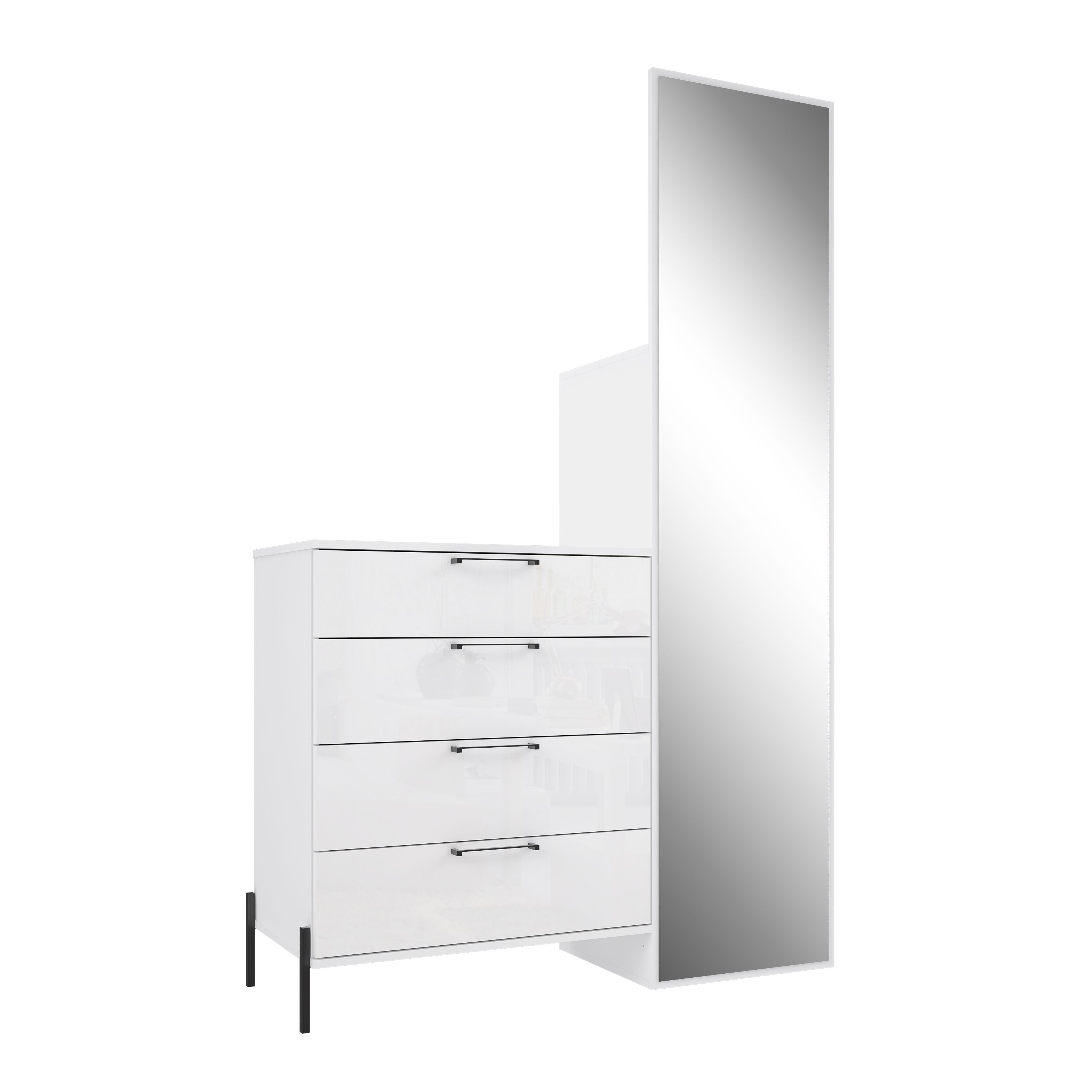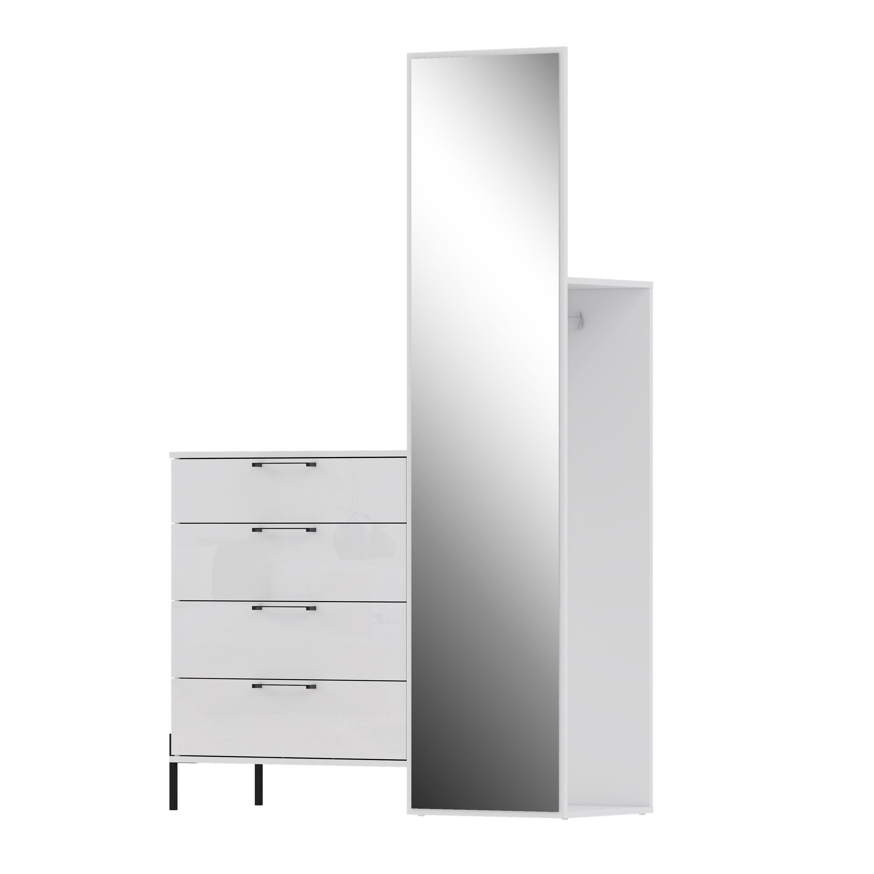 Front und Korpus: Weiß Hochglanz / Spiegel