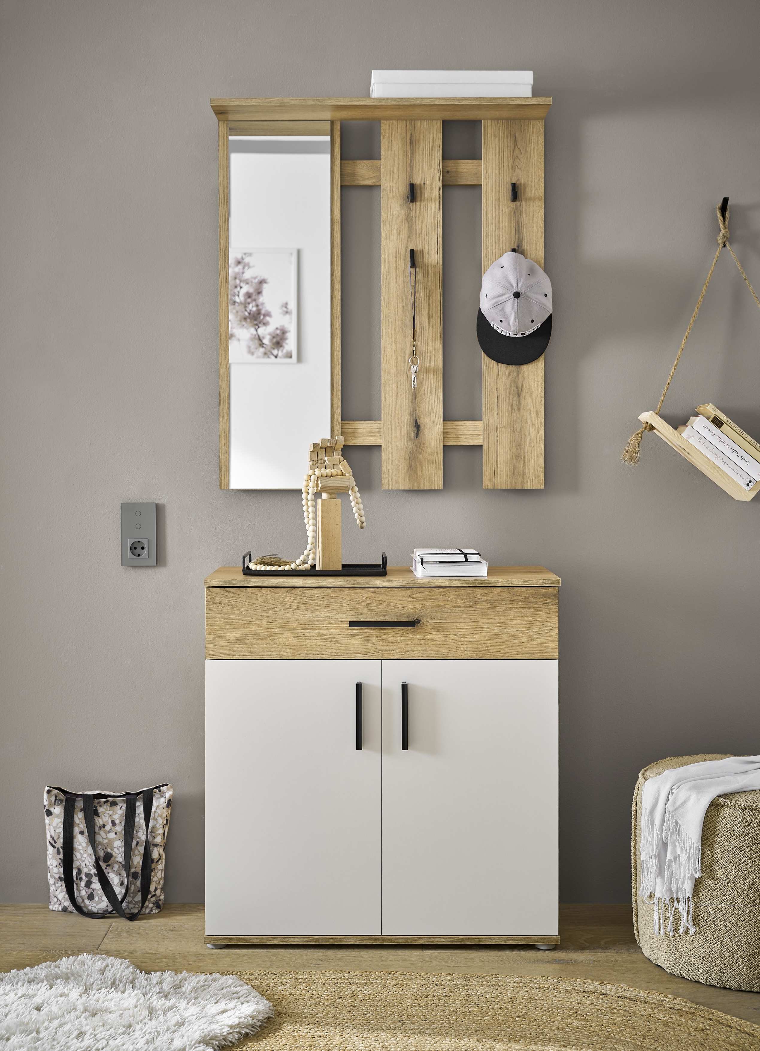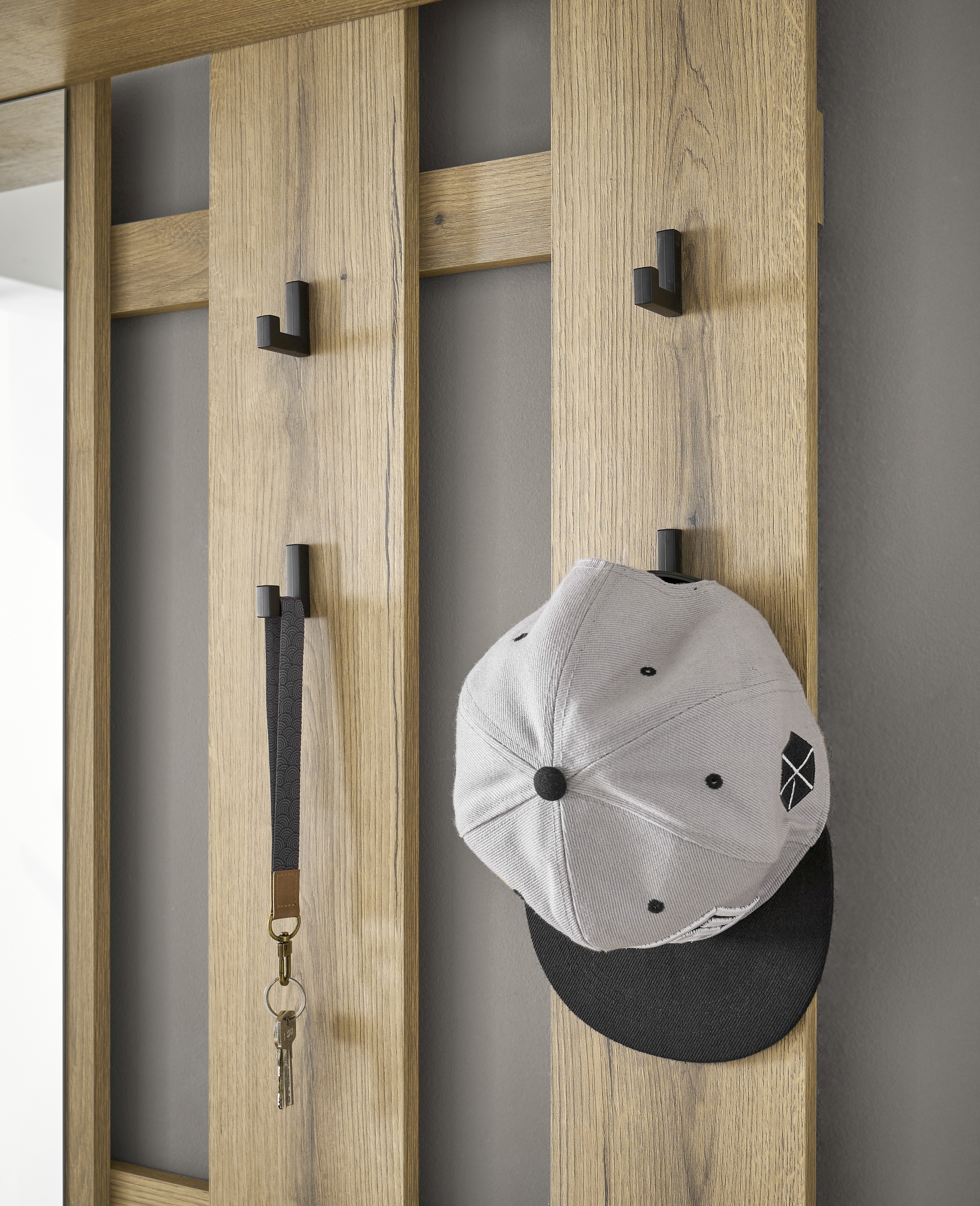 1 Garderobenpaneel mit 1 Spiegel und 4 Kleiderhaken